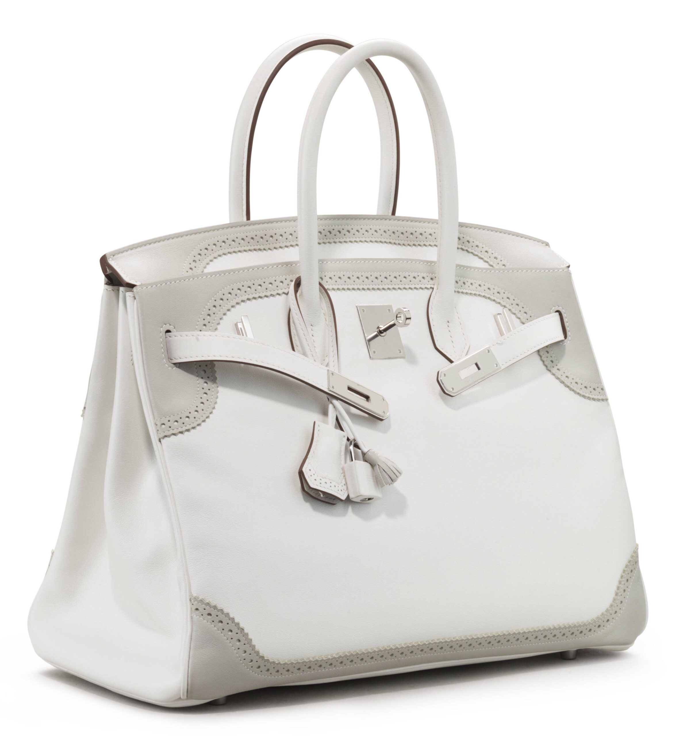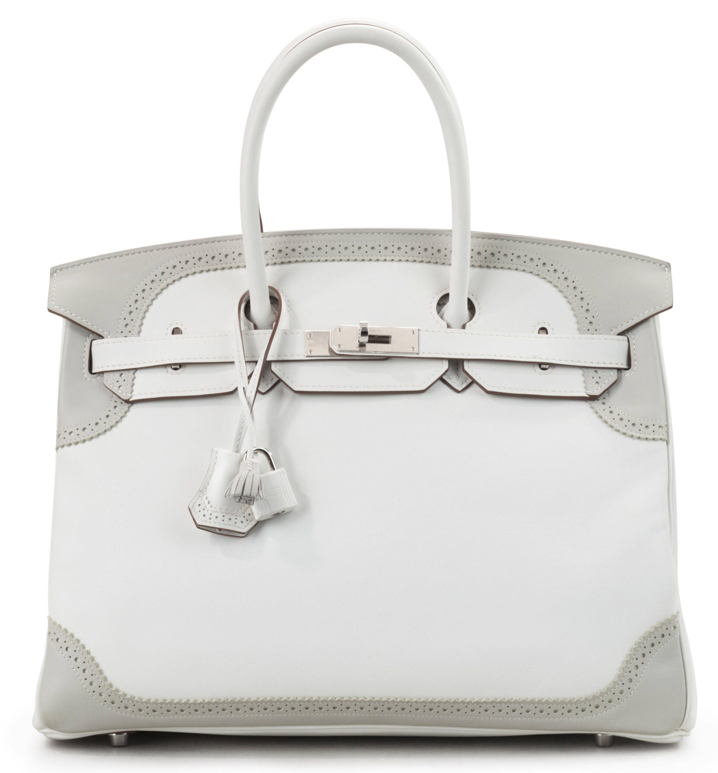 This Limited Edition White and Gris Perle Ghillies Birkin 35 is more than an handbag. It is a conversation piece, a work of art, and a testament to the pinnacle of leather goods creation. It is for the individual who seeks not just the iconic, but the exceptional—the singular piece that defines a collection and captures a moment of pure Hermès inspiration. This is your chance to claim a legend.