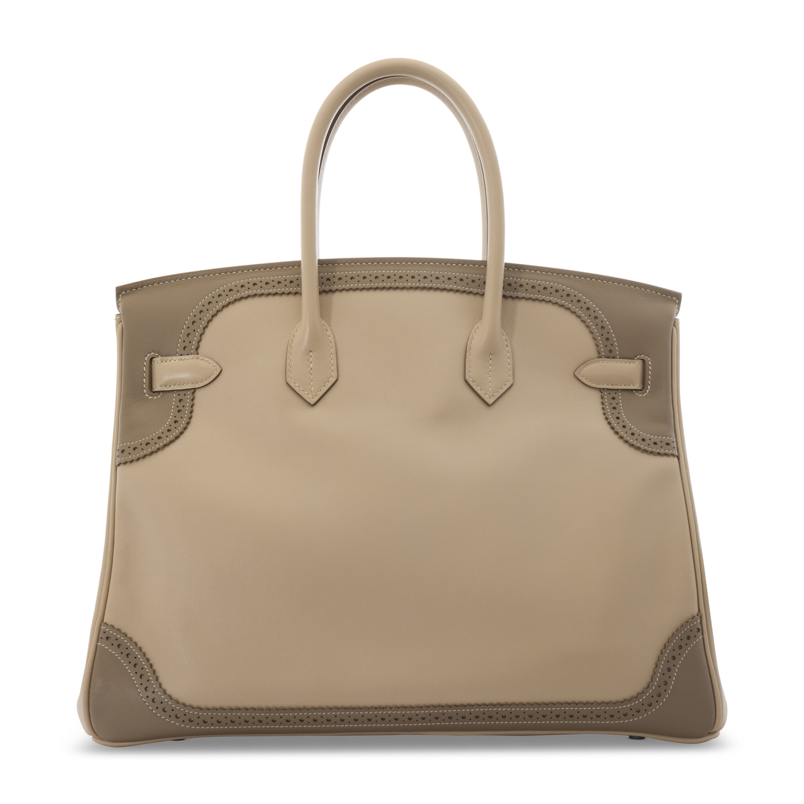As a limited-edition offering from Hermès, the Ghillies Birkin is inherently rare. Coupled with the fact that both Argile and Étope are discontinued colors in the Swift leather, this bag’s availability on the secondary market is an extraordinary event. The Palladium hardware—a sleek, platinum-toned finish—adds a modern, cool contrast to the warm neutrals, ensuring a timeless appeal.