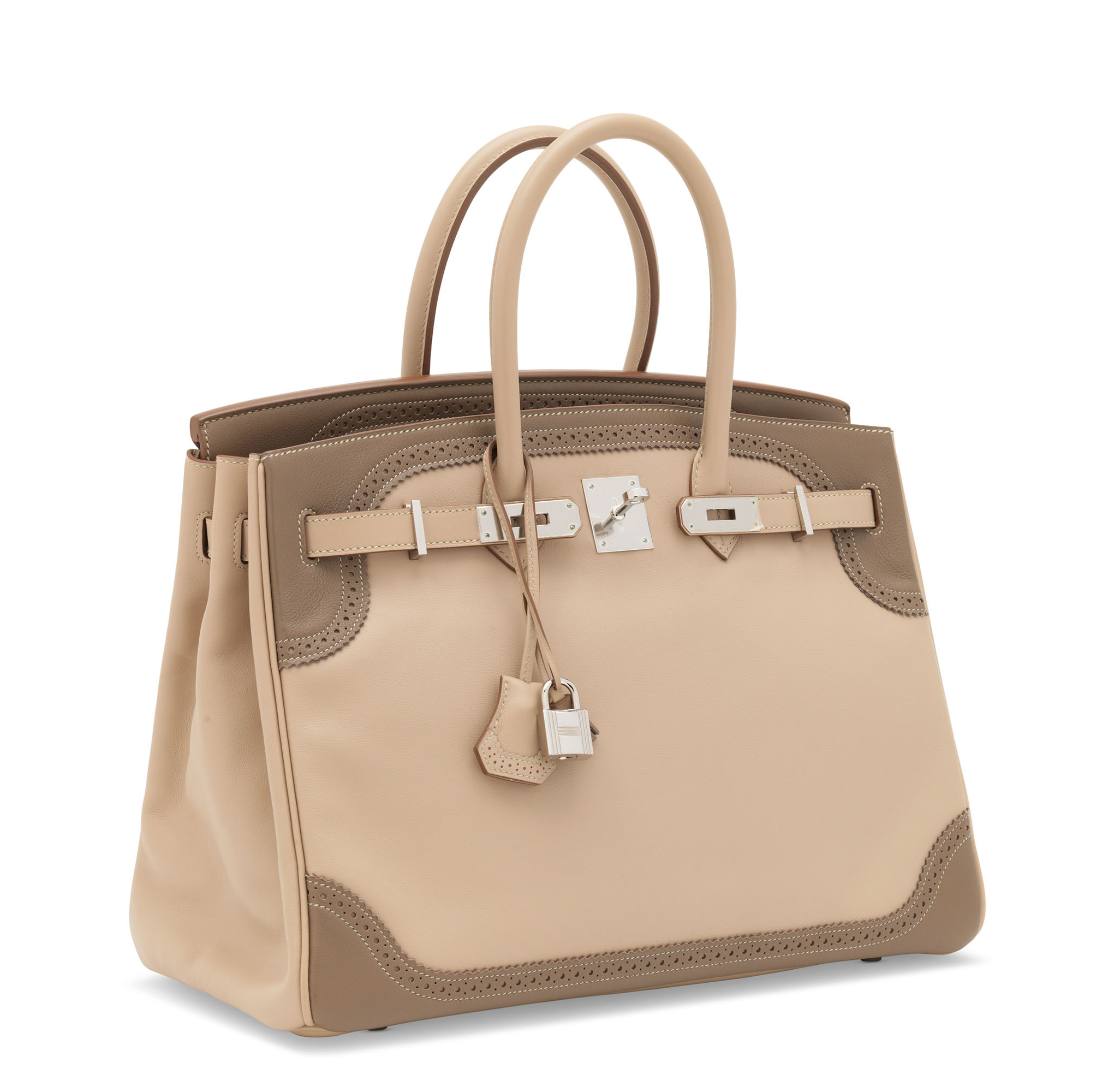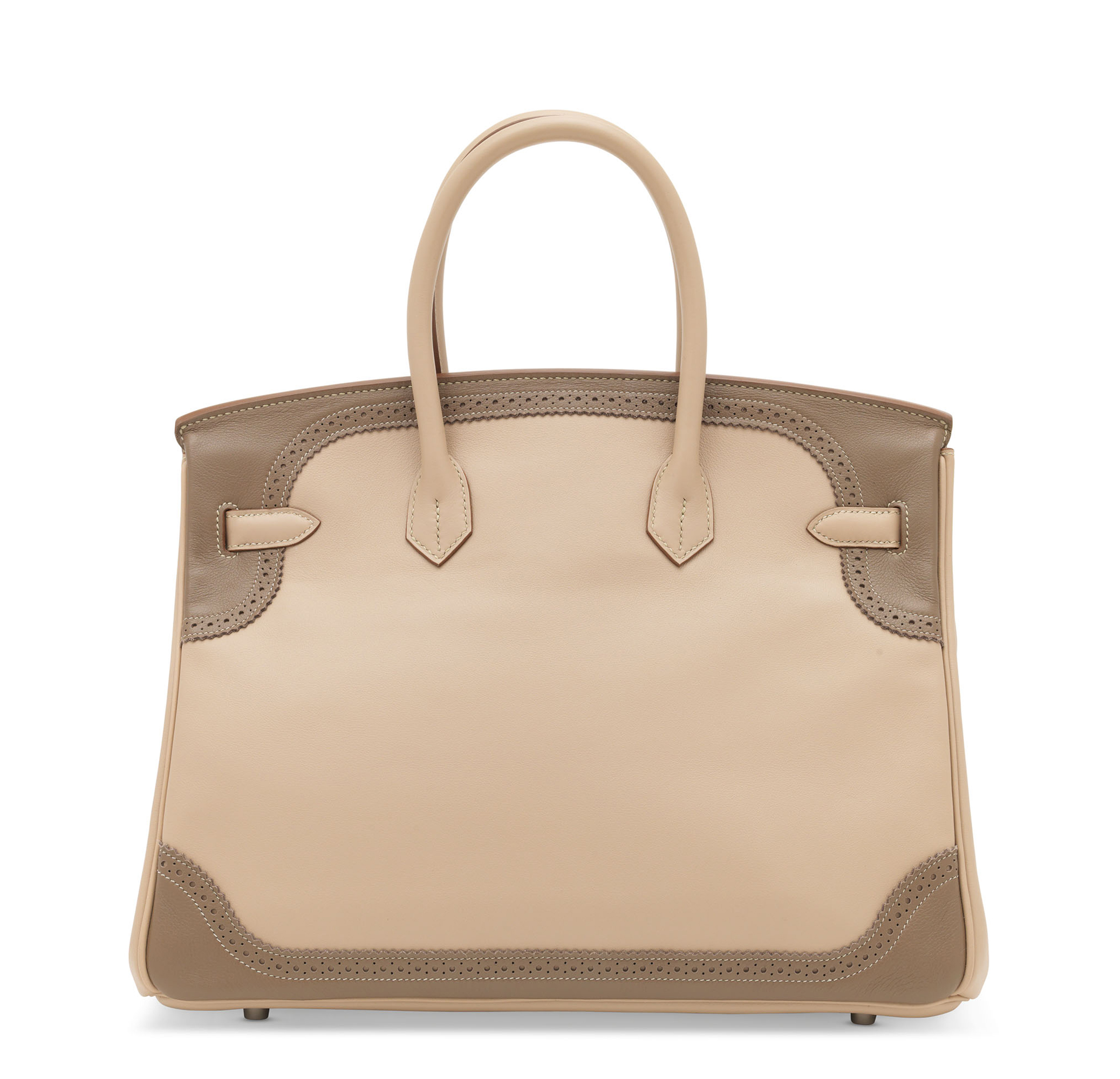 A LIMITED EDITION ARGILE & ÉTOUPE SWIFT LEATHER GHILLIES BIRKIN 35 WITH PALLADIUM HARDWARE