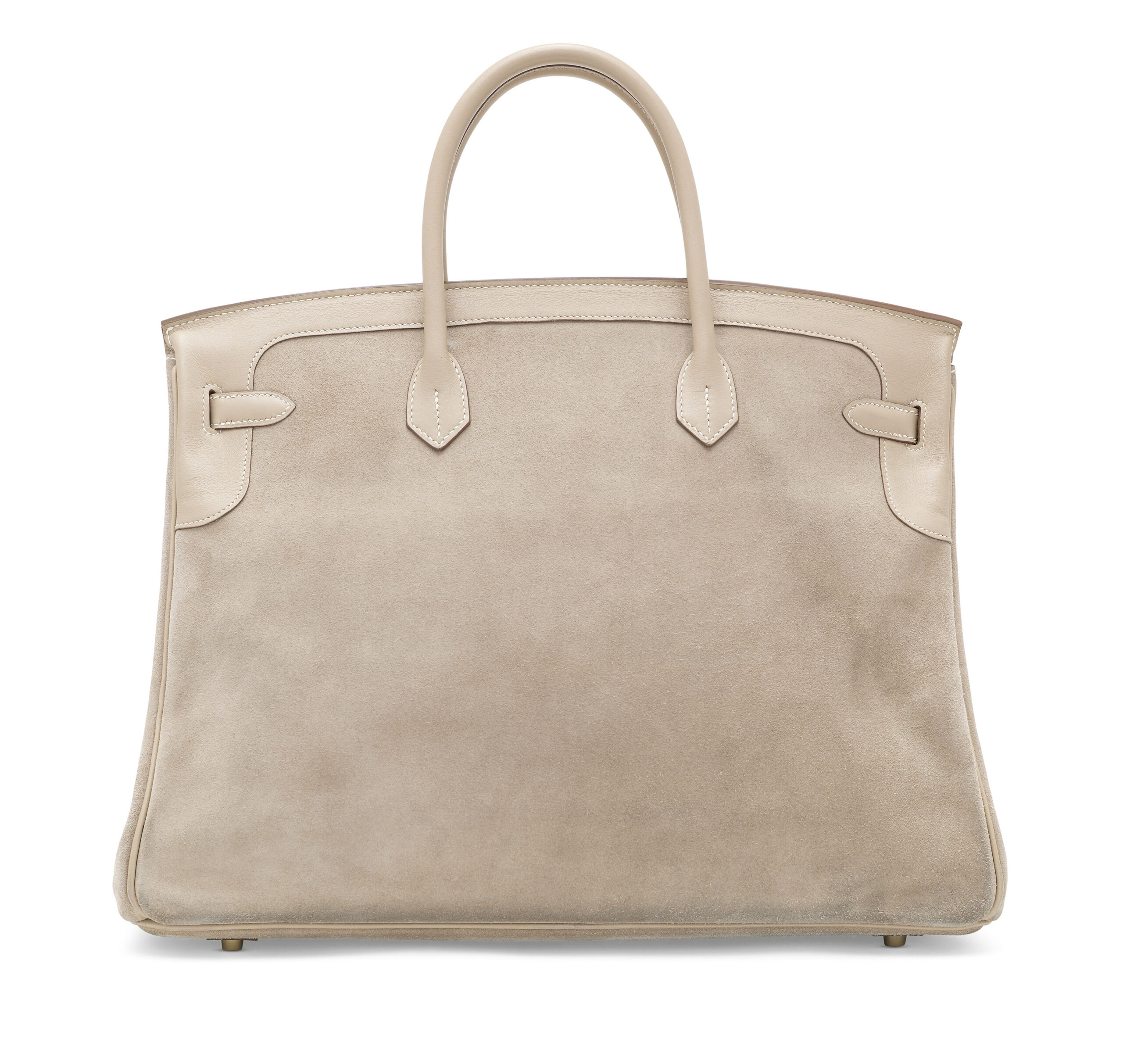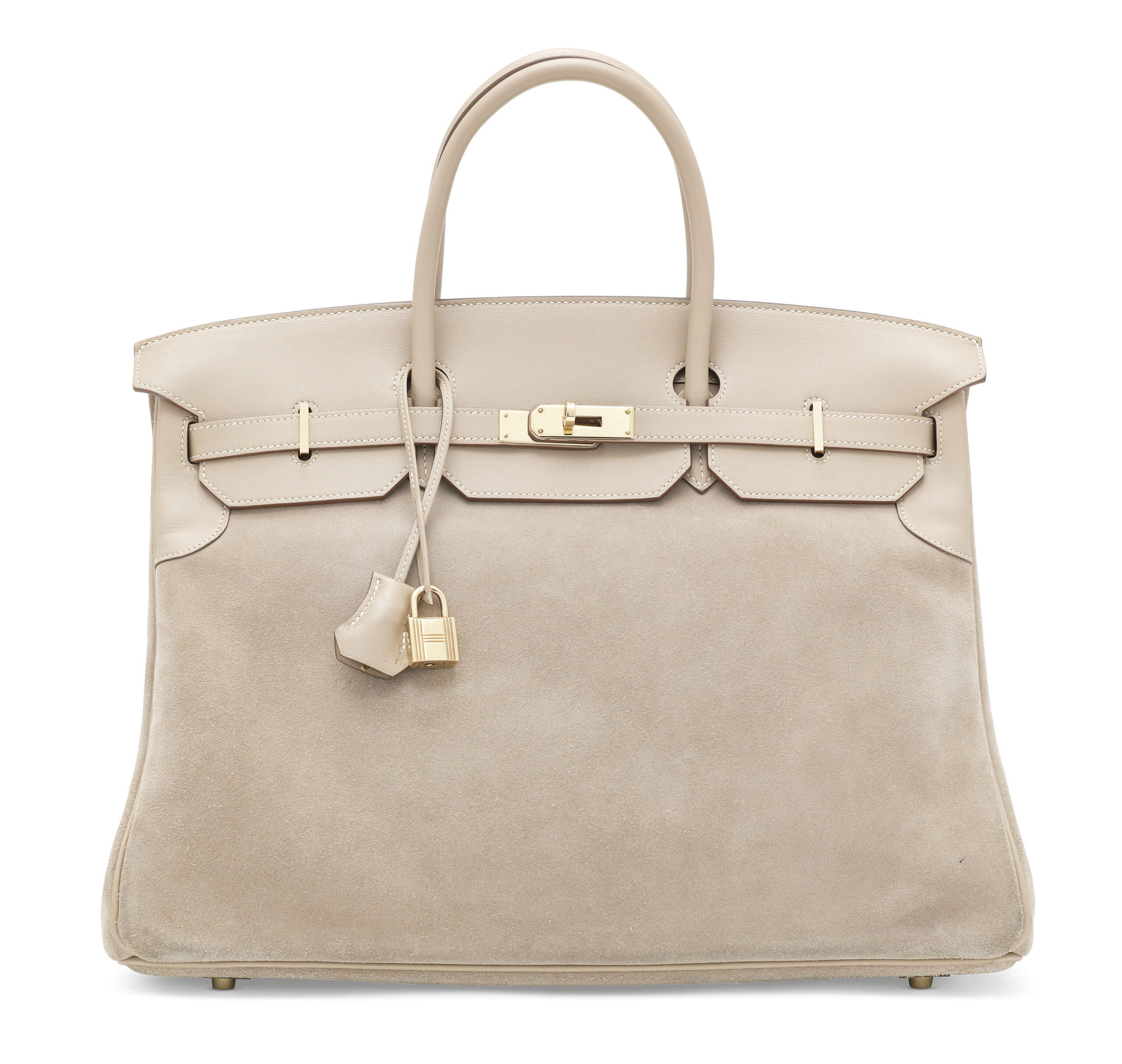 The genius of the “Grizzly” design lies in its textural symphony. The rugged, nubby texture of Veau Doblis suede in the elegant, neutral Argile hue forms the body, offering a tactile depth that is both visually striking and remarkably sophisticated. This is elegantly framed and contrasted by the smooth, creamy Swift leather on the sangles, flap, and piping—a leather renowned for its soft, fine grain and rich ability to hold color. The chosen palette is one of timeless neutrality, ensuring this piece is a versatile companion that commands attention without shouting.