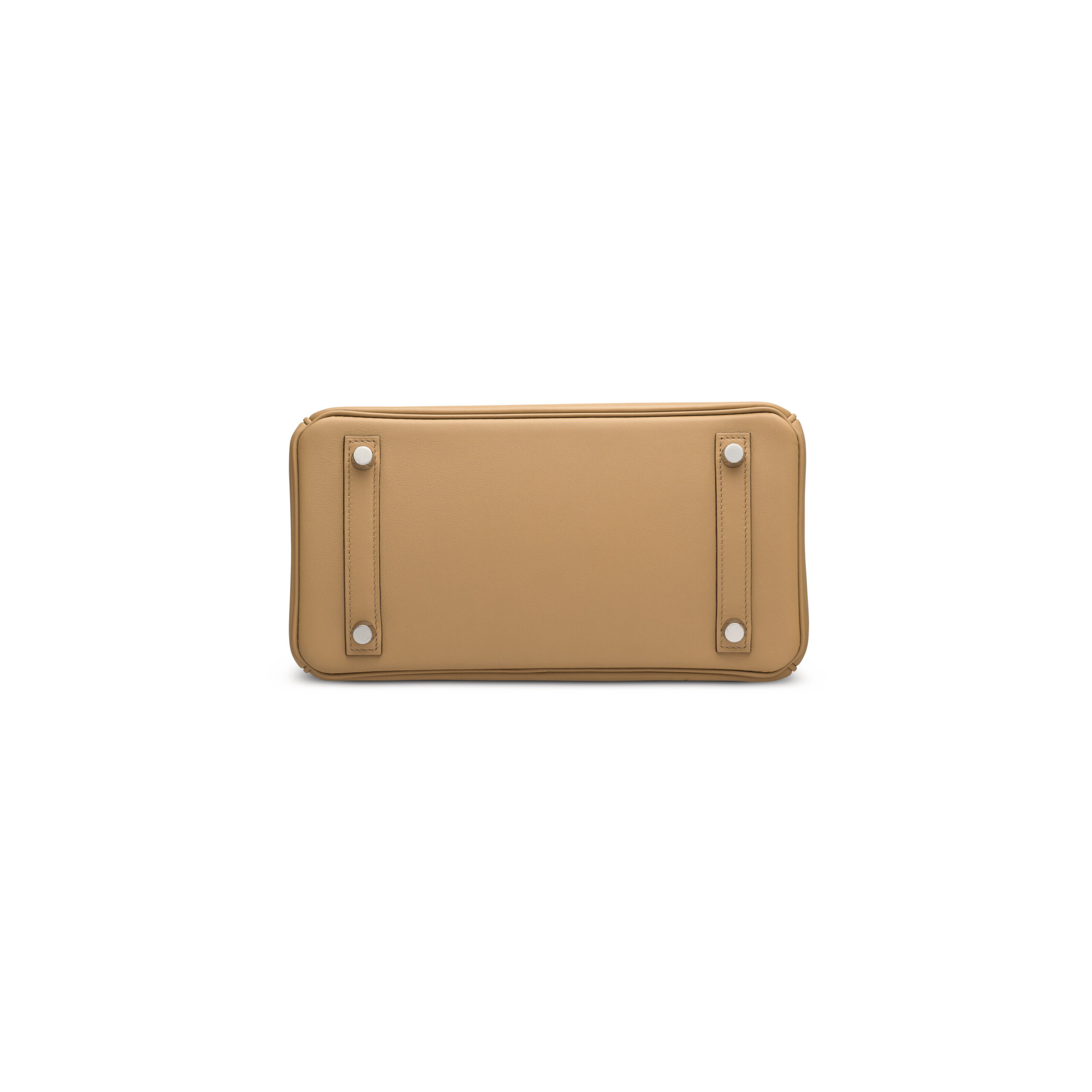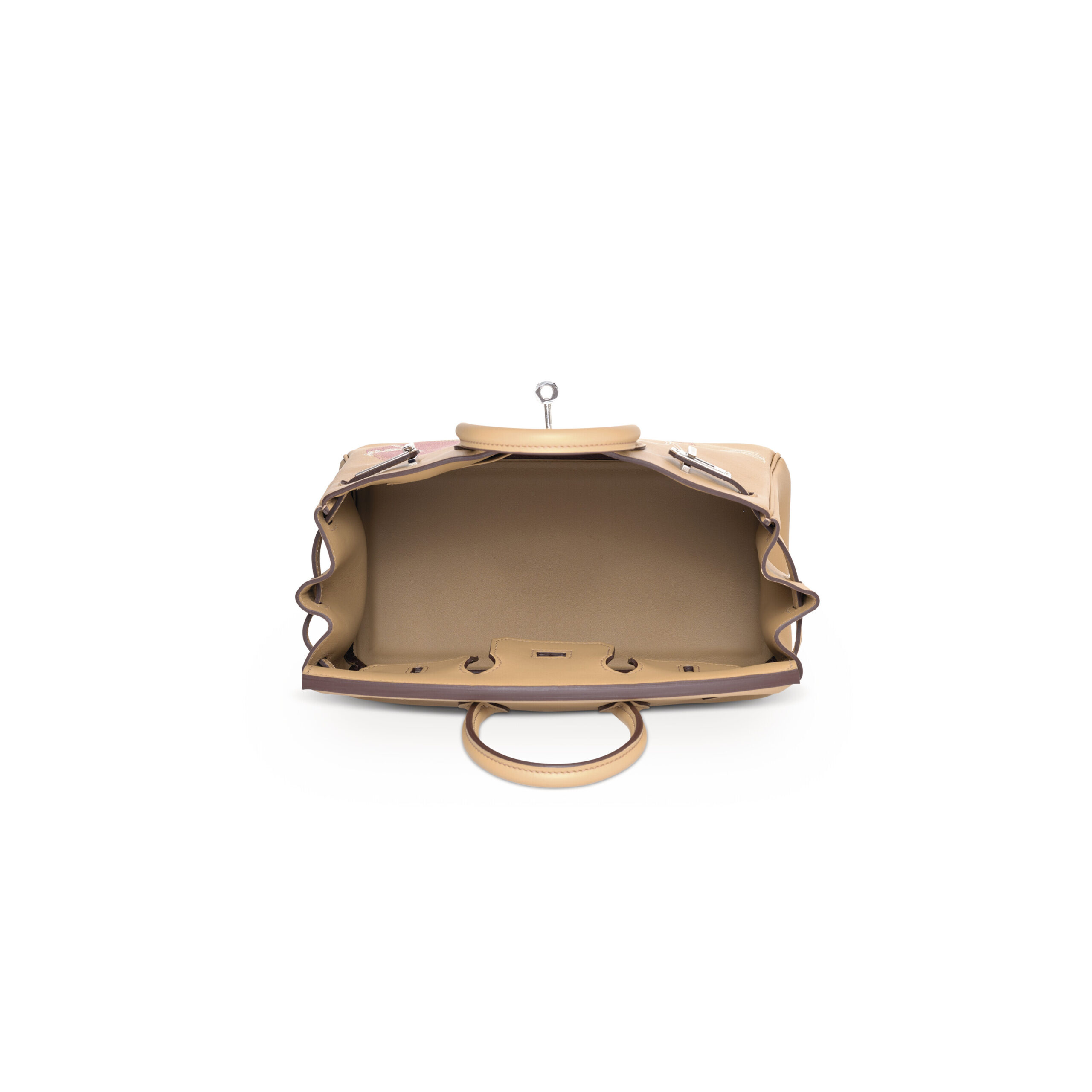 The palladium hardware provides the perfect counterpoint. Its silvery-white, polished finish reflects light without the warmth of gold, creating a modern, crisp, and elegant contrast against the soft Biscuit leather. From the iconic porte-clés (keyhole) turn-lock to the feet and plaque, each piece is meticulously cast, polished, and applied by Hermès artisans.
