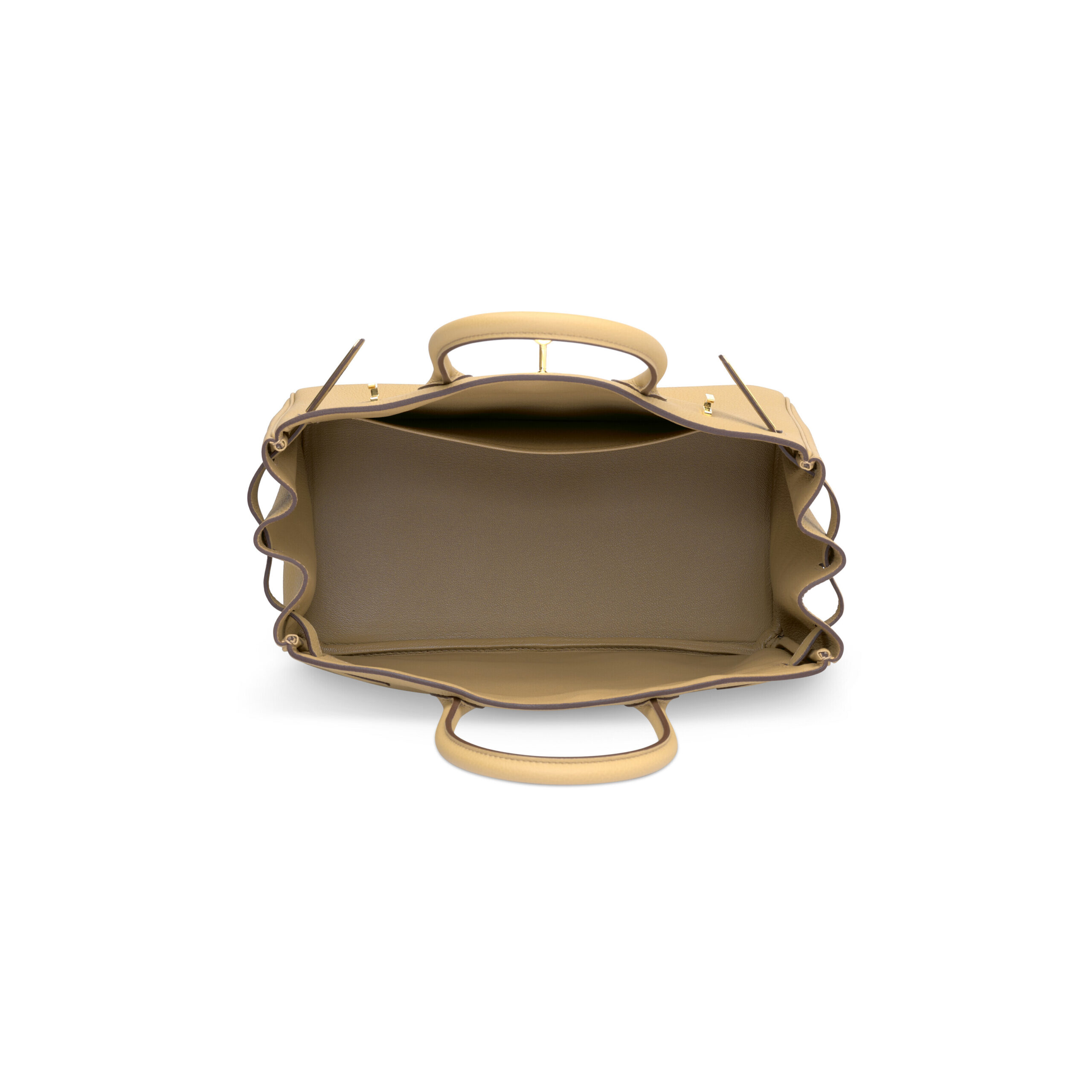 This Birkin’s magic lies in its meticulous construction. The durable, grain-rich Togo leather forms the resilient body, while the supple Swift leather provides a silken contrast on the sangles, handle, and trim. This combination is as tactile as it is visual. The iconic gold-plated hardware—from the clochette and lock to the fermoirs—gleams with a warm, rich patina, perfectly complementing the neutral, creamy tones of the Biscuit hue. Every stitch, laid by the hand of a single artisan, promises a lifetime of enduring beauty.