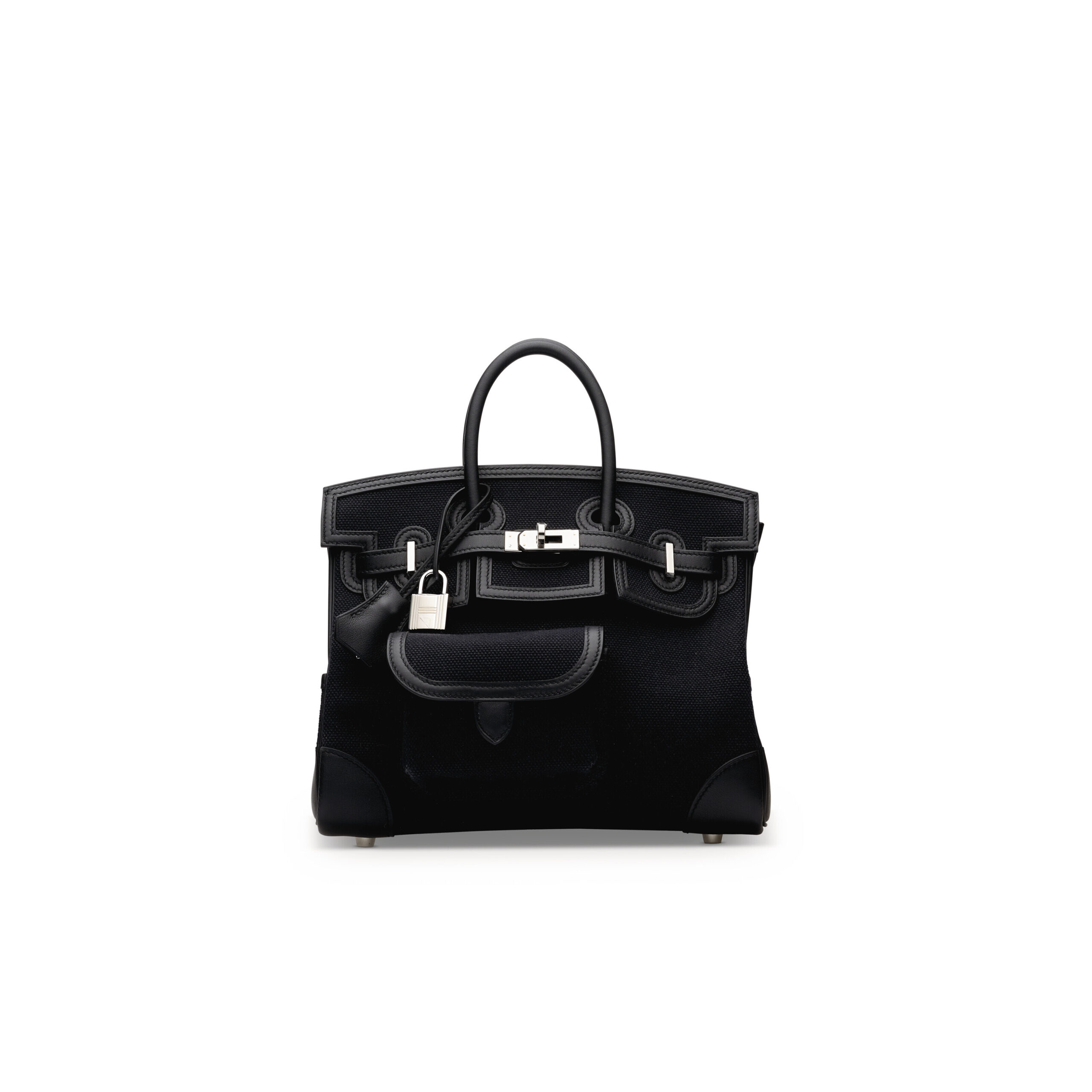 In the realm of exceptional Hermès, few pieces capture utilitarian elegance and exclusive design like the Limited Edition Cargo Birkin 25. This particular masterpiece, crafted in a sophisticated fusion of durable black canvas and supple black Swift leather, represents a departure from tradition while upholding the maison’s legendary craftsmanship. Finished with cool, contemporary palladium hardware, it is a statement piece for the collector who values both rarity and refined functionality.