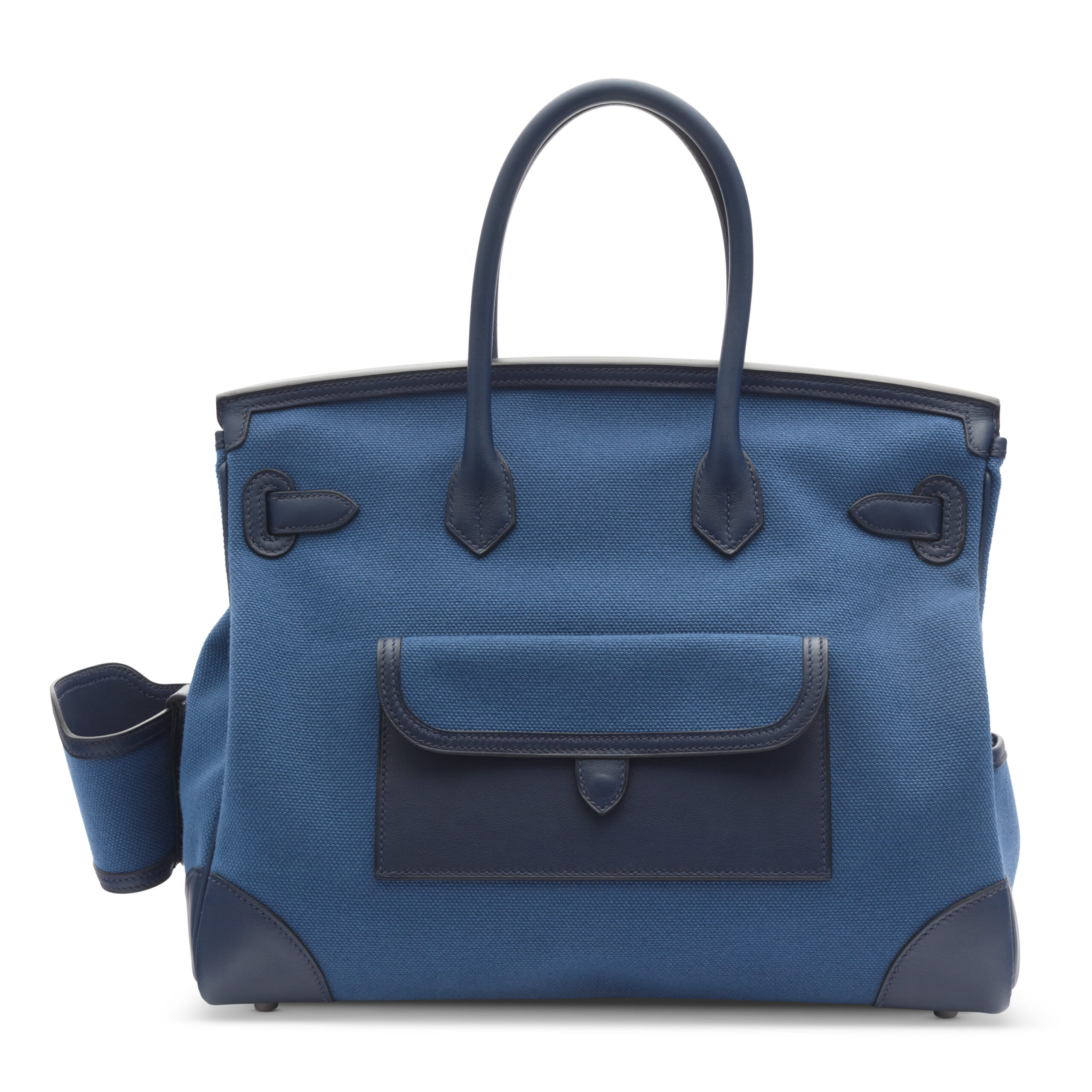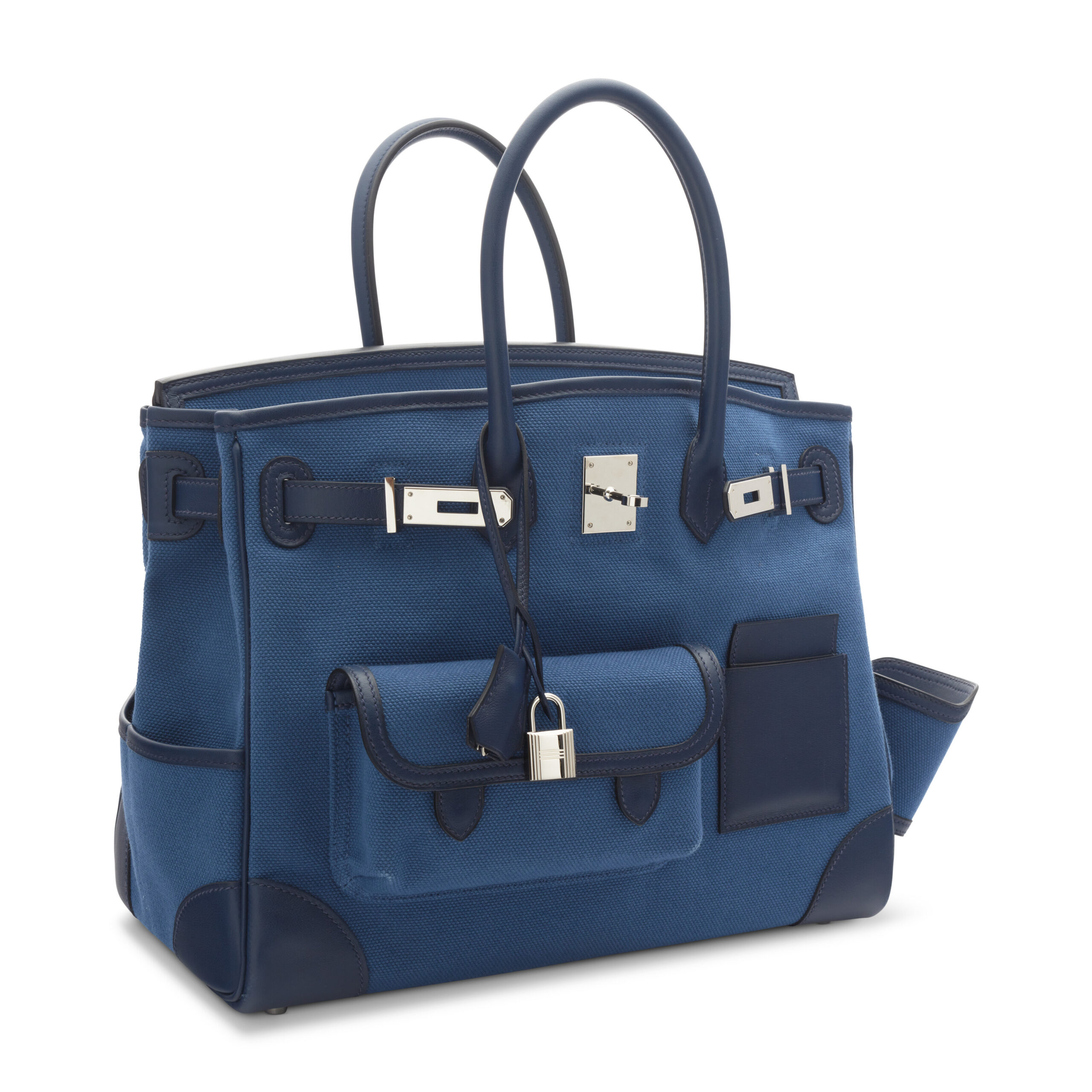 A LIMITED EDITION BLEU ÉGÉE GOËLAND TOILE & SWIFT LEATHER CARGO BIRKIN 35 WITH PALLADIUM HARDWARE
