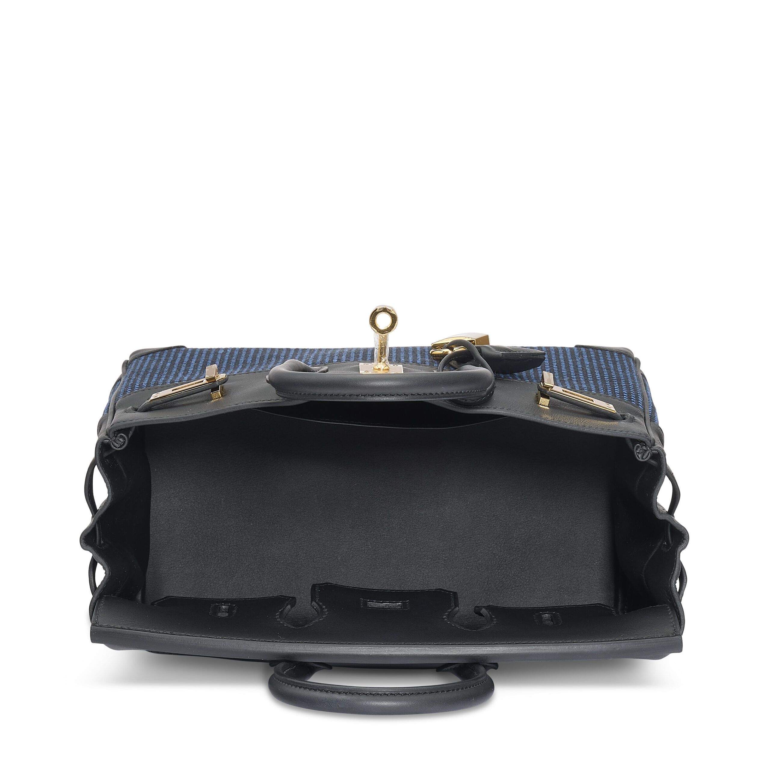 The soul of this bag lies in its contrasting yet harmonious materials. The durable, legendary Toile QuadriLLE—a hallmark of Hermès heritage—is celebrated for its robustness and textured character. It is meticulously framed and complemented by the supple, fine-grained embrace of Black Swift leather, known for its soft, matte finish and impeccable ability to hold shape. Each material is hand-cut and saddle-stitched by a single master artisan, ensuring seamless unity. The gleaming gold-plated hardware—from the iconic fermoir (turn-lock) to the charnières (hinges) and pieds (feet)—provides a radiant counterpoint, elevating the bag’s aesthetic to pure elegance.