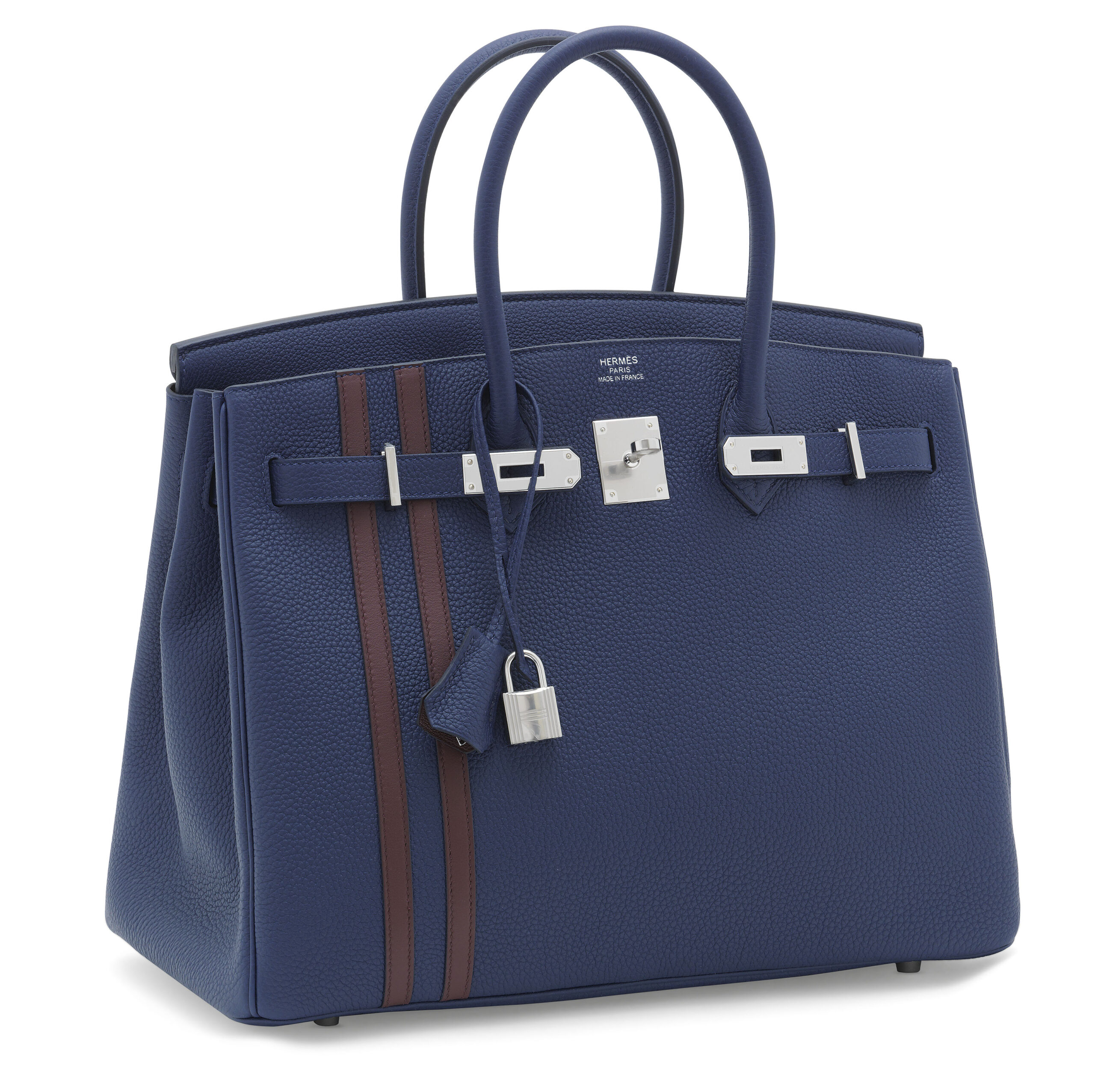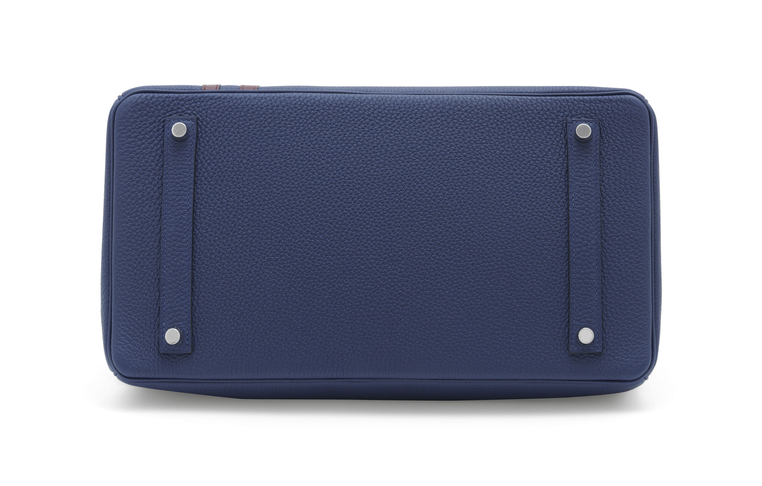 A LIMITED EDITION BLEU ENCRE & BORDEAUX TOGO LEATHER OFFICIER BIRKIN 35 WITH PALLADIUM HARDWARE