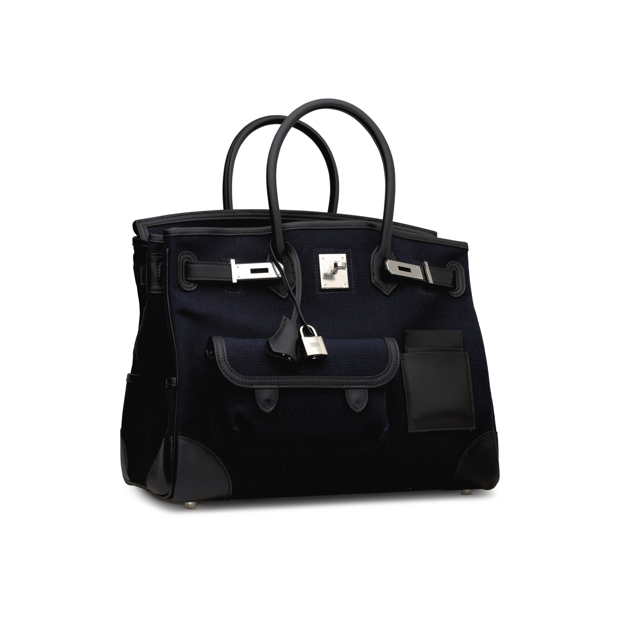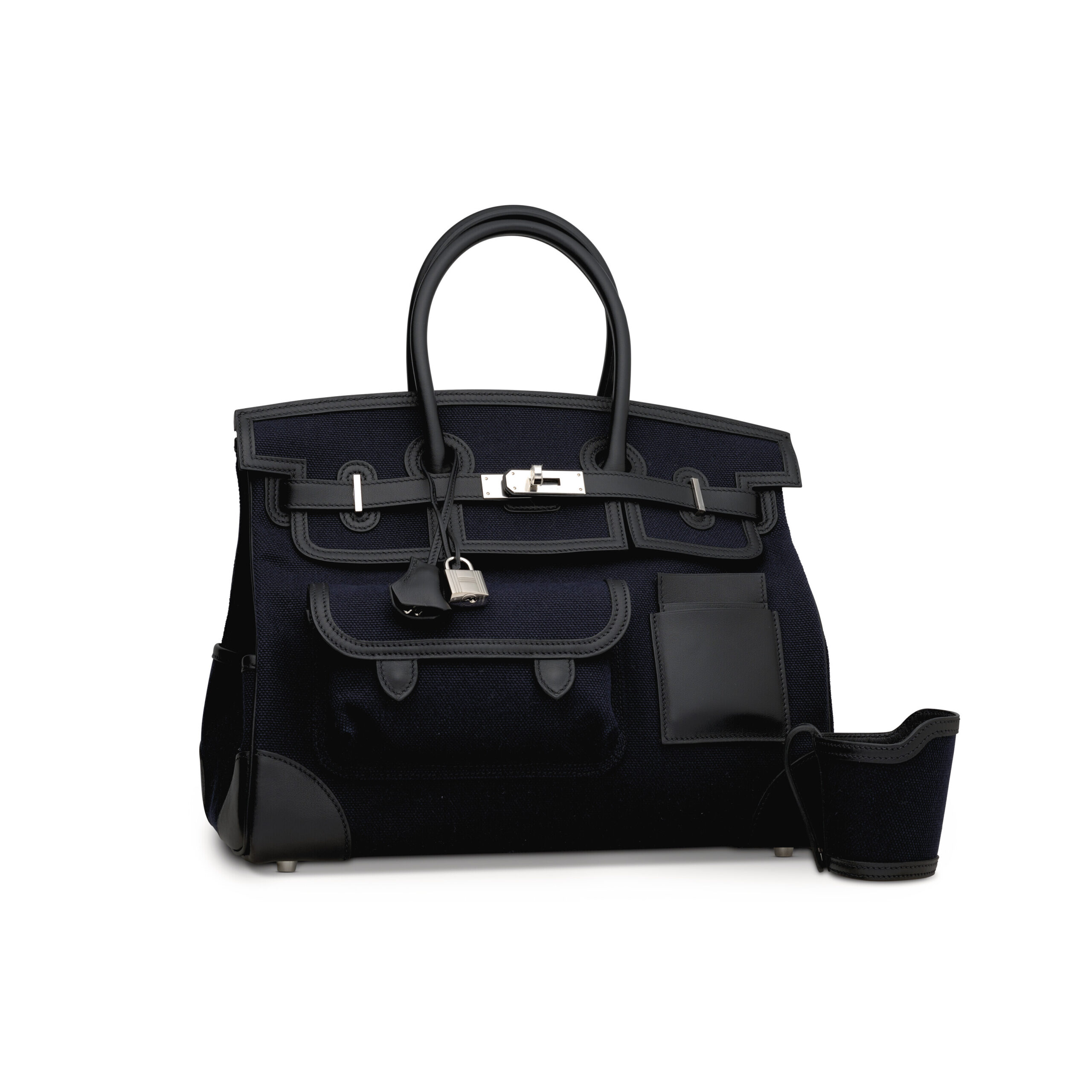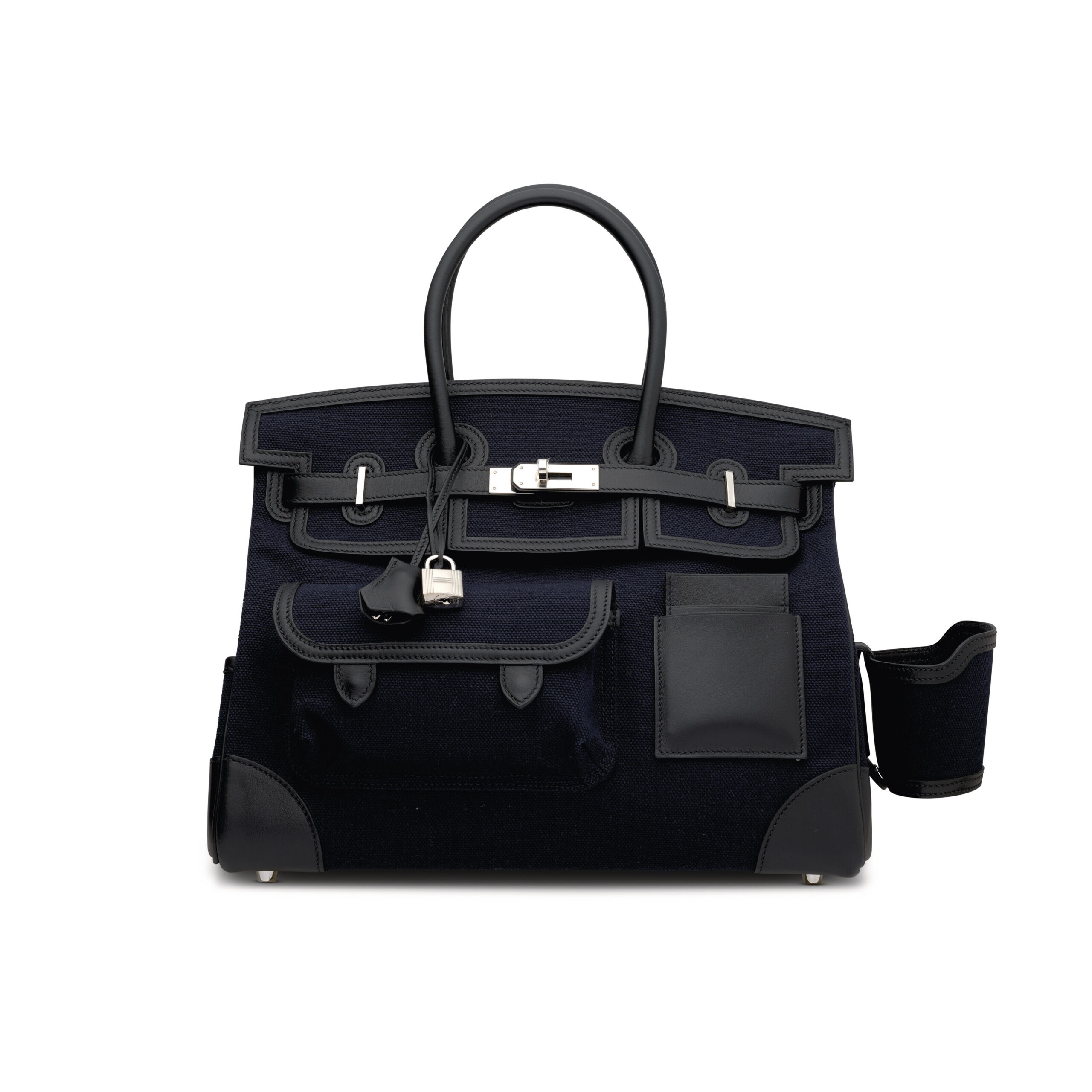 In the rarefied world of Hermès, certain creations transcend accessory status to become wearable art. This is the Limited Edition Cargo Birkin 35 in the deeply sophisticated Bleu Marine canvas, paired with sumptuous Black Swift leather and gleaming Palladium hardware. A piece conceived for the global connoisseur, it reimagines the iconic silhouette with a purposeful, travel-ready elegance that is as functional as it is profoundly collectible. More than a handbag, it is a statement of discernment for those who demand resilience without sacrificing an ounce of luxury.