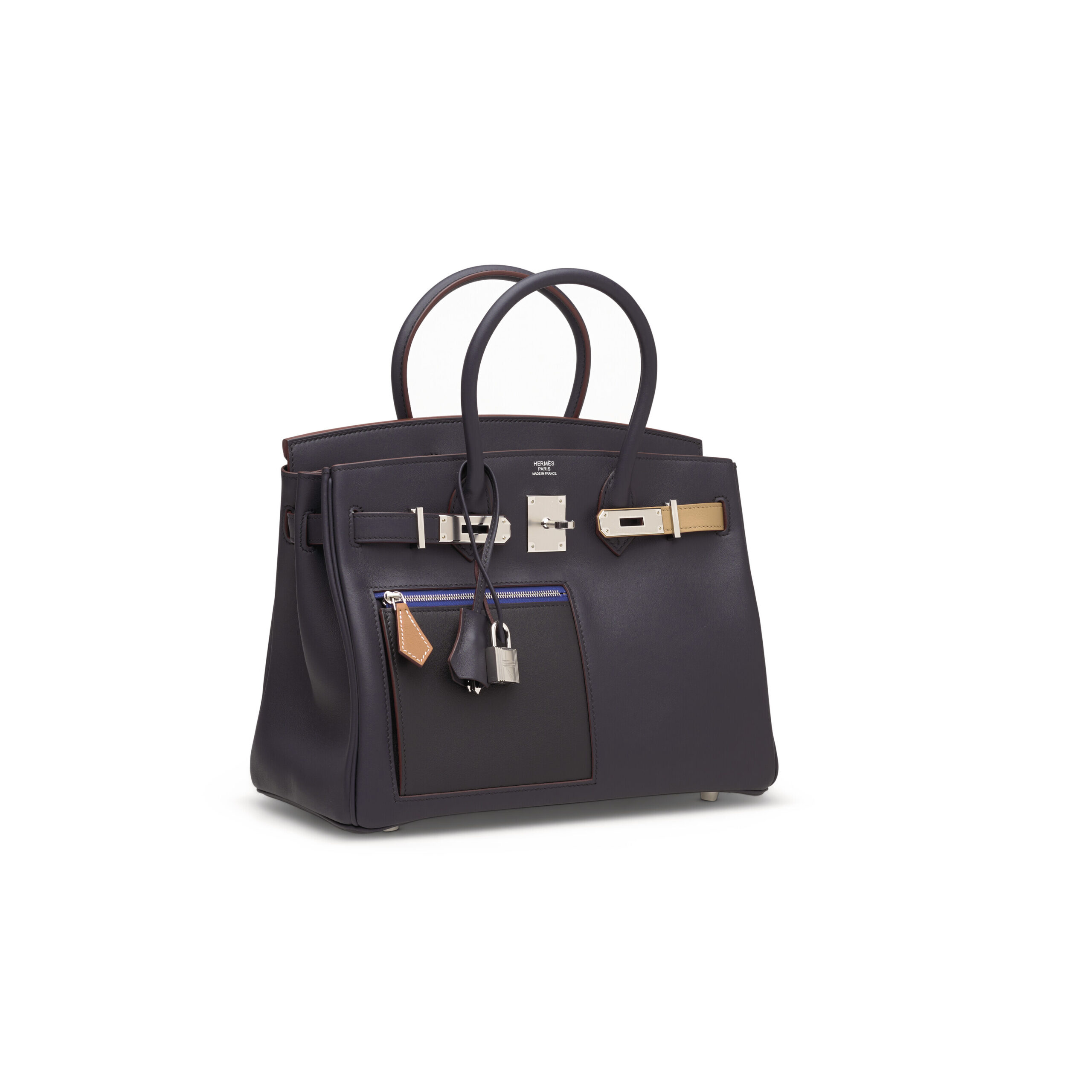 In the rarefied world of haute maroquinerie, few creations capture the imagination and embody artistic audacity like the Colormatic Birkin. This exceptional Limited Edition Birkin 30 is not merely a handbag; it is a wearable canvas where Hermès’ legendary craftsmanship meets a bold, modernist palette. Presented in sumptuous Swift leather, this piece harmonizes five sophisticated hues—Bleu, Noir, Chai, Etoupe, and a touch of Gold—elevated by the cool, contemporary gleam of Palladium hardware. It stands as a definitive statement for the connoisseur who values rarity, color theory, and unparalleled design.