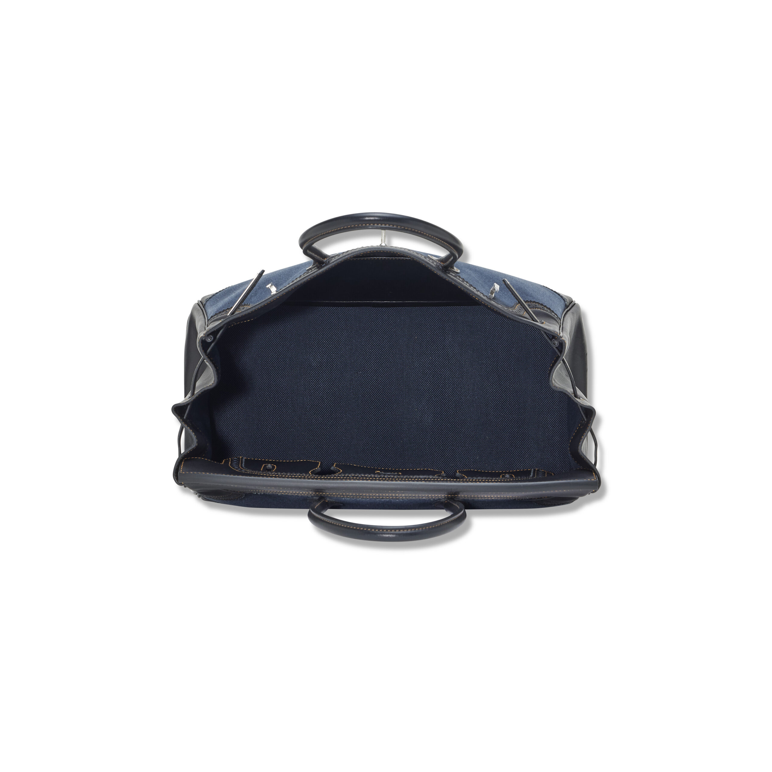 The 35cm scale provides an ideal balance of presence and practicality, offering ample space for daily essentials while retaining an elegant silhouette. The brushed palladium hardware offers a subtle, muted lustre that complements both the cool tone of the denim and the deep black leather, resisting fingerprints and exuding a contemporary feel. Every element, from the perfectly rolled handles and reinforced base to the flawlessly aligned sangles (straps) and clochette (lock cover), exemplifies the savoir-faire that is synonymous with the Hermès name. This bag is designed to evolve gracefully with its owner, its materials destined to develop a unique personality over time.