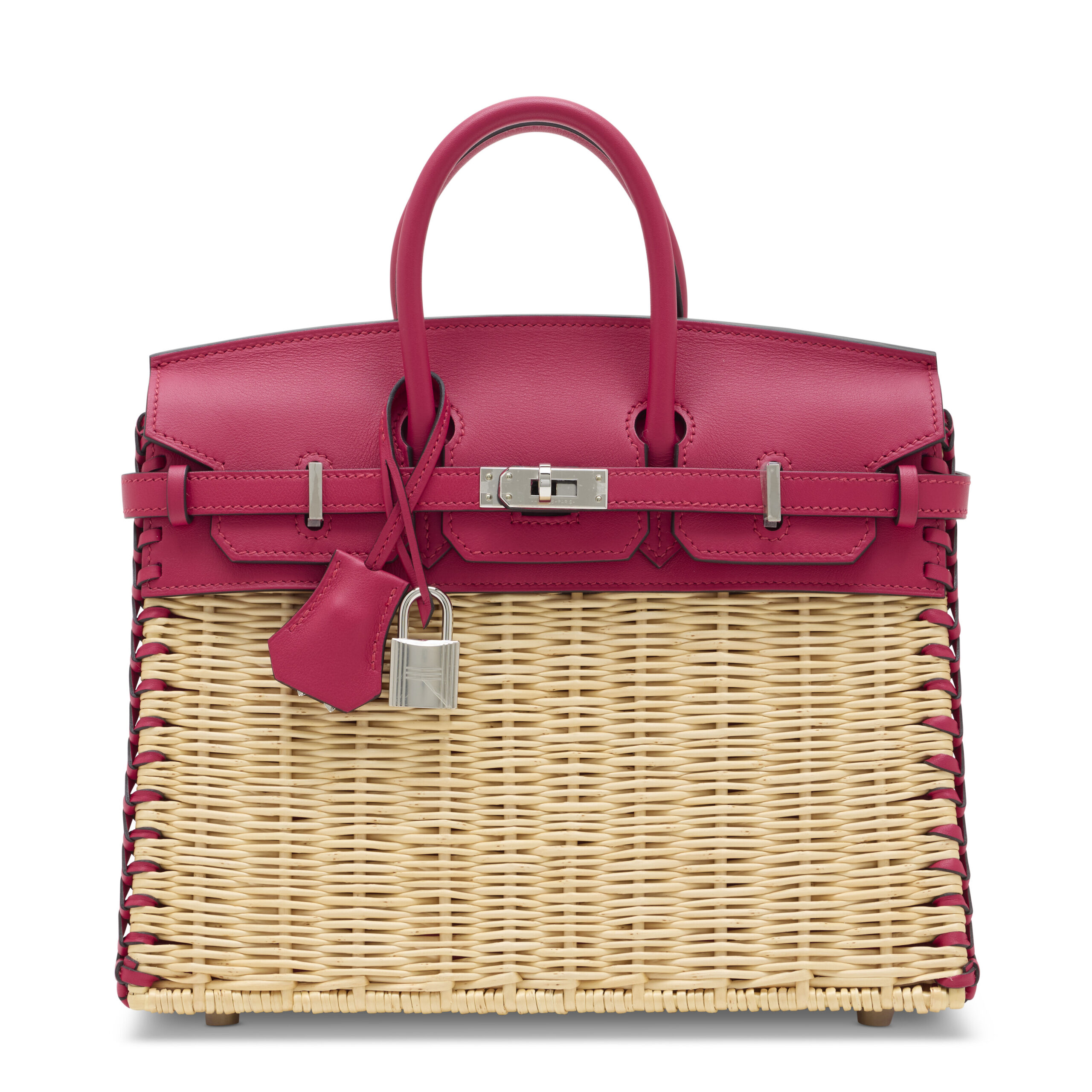 In the world of luxury, few creations capture the imagination like a limited-edition Hermès Birkin. This Framboise Picnic Birkin 25 is a symphony of bold color and artisanal texture—a piece designed not just to accessorize, but to captivate. Crafted from supple Swift leather in a vibrant, raspberry-inspired framboise hue, it is meticulously accented with handwoven osier detailing, elevating the iconic silhouette into a wearable objet d’art. Finished with cool, luminous palladium hardware, this bag is a definitive statement of discerning taste and exclusive elegance.