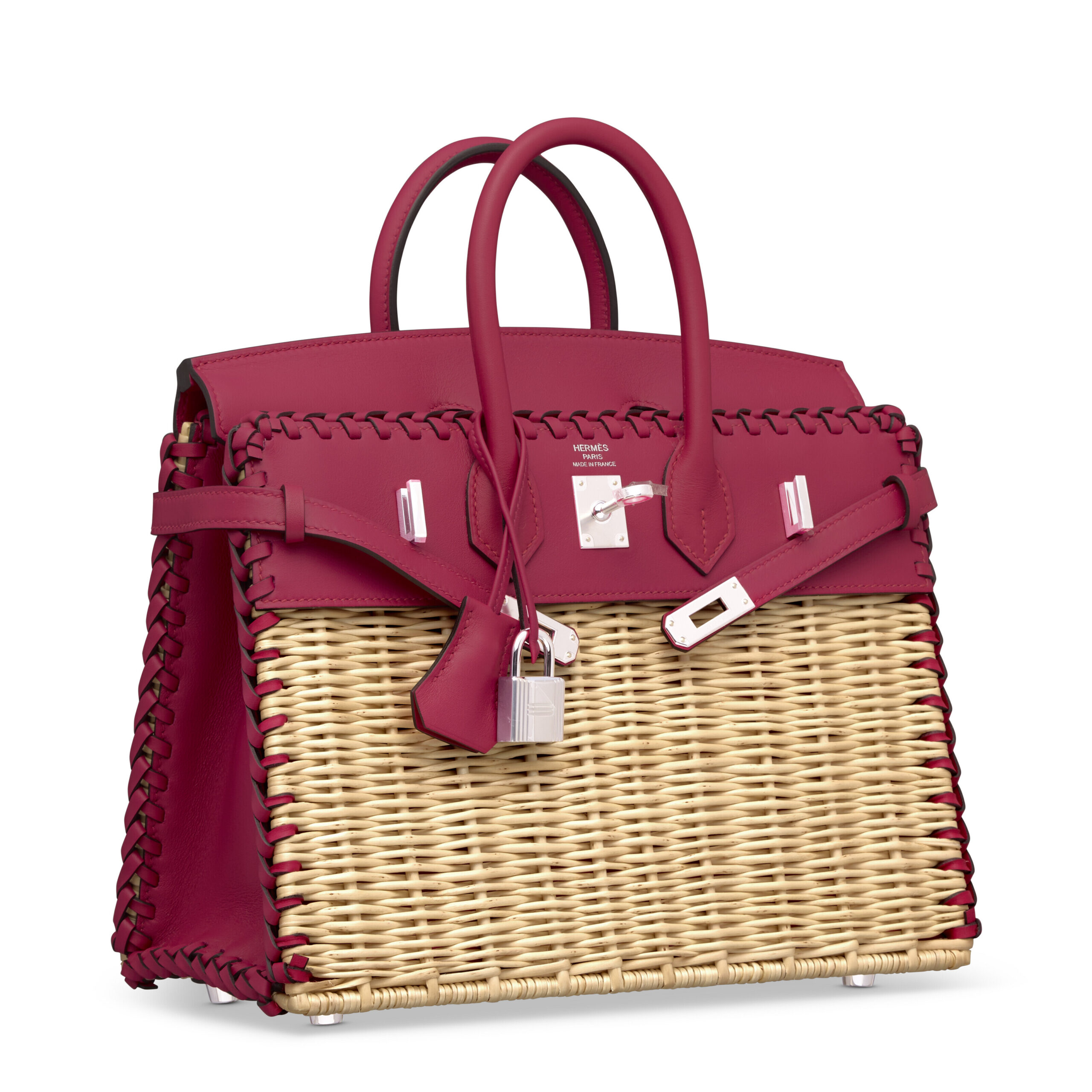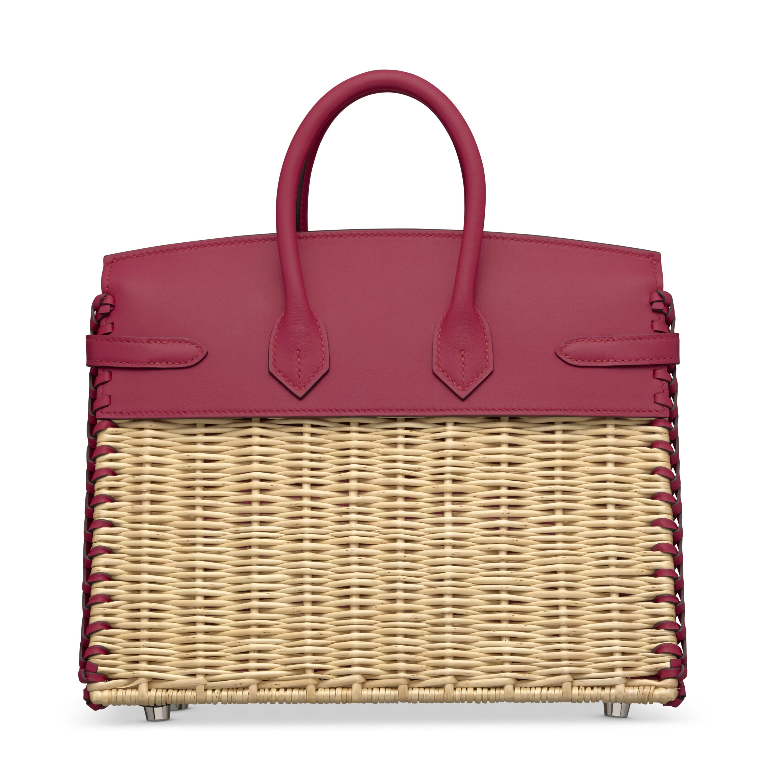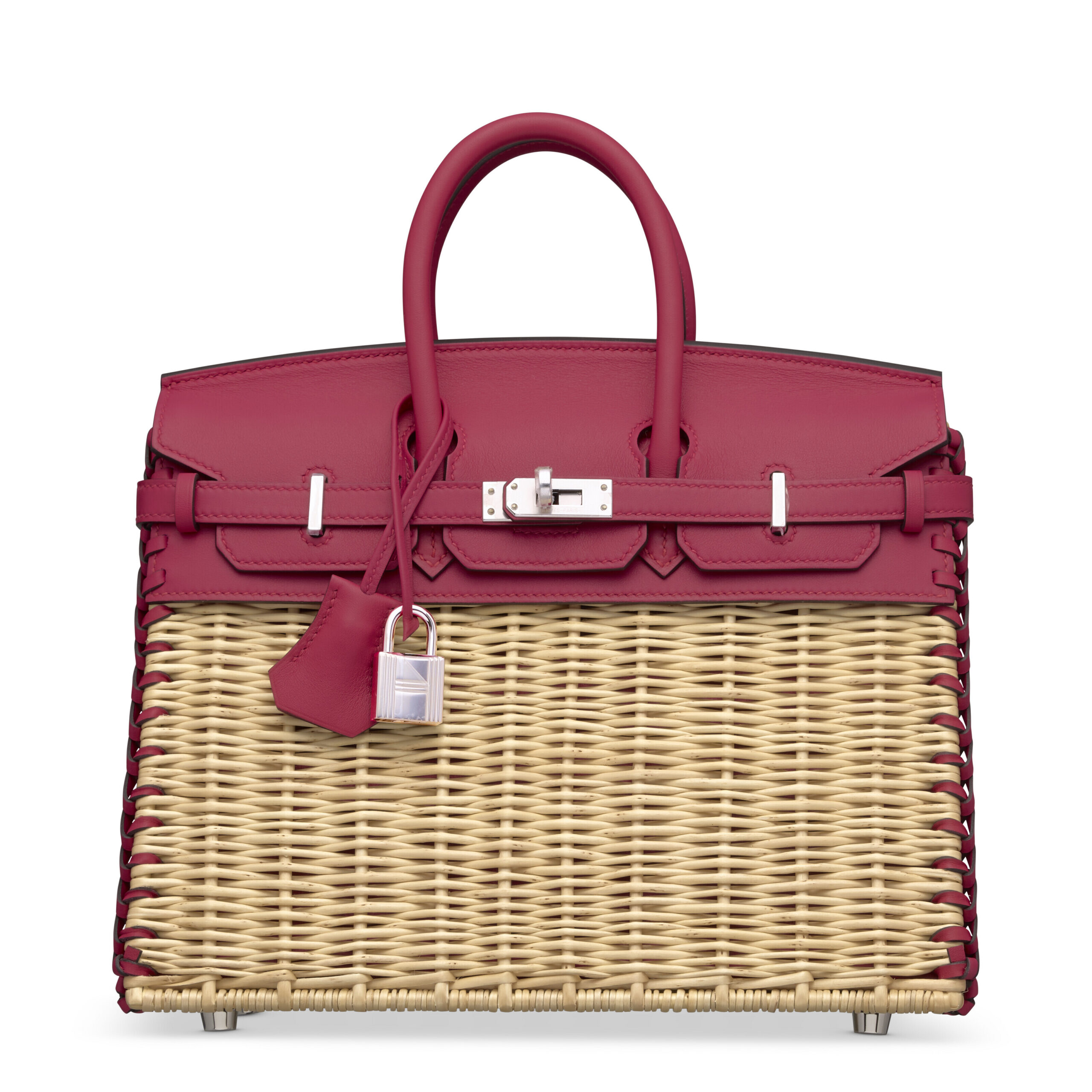 Imagine a masterpiece where French haute couture meets artisanal pastoral charm. This is not merely a handbag; it is the legendary Hermès Picnic Birkin 25, a limited edition creation that represents one of the maison’s most whimsical and sought-after interpretations. Crafted in the sumptuous, saturated hue of Framboise (raspberry) Swift leather, accented with genuine hand-woven Osier willow details, and finished with cool Palladium hardware, this bag is a triumphant statement of playful elegance. It is a piece for the connoisseur who desires not just an accessory, but a storied artifact from fashion’s most revered archive.