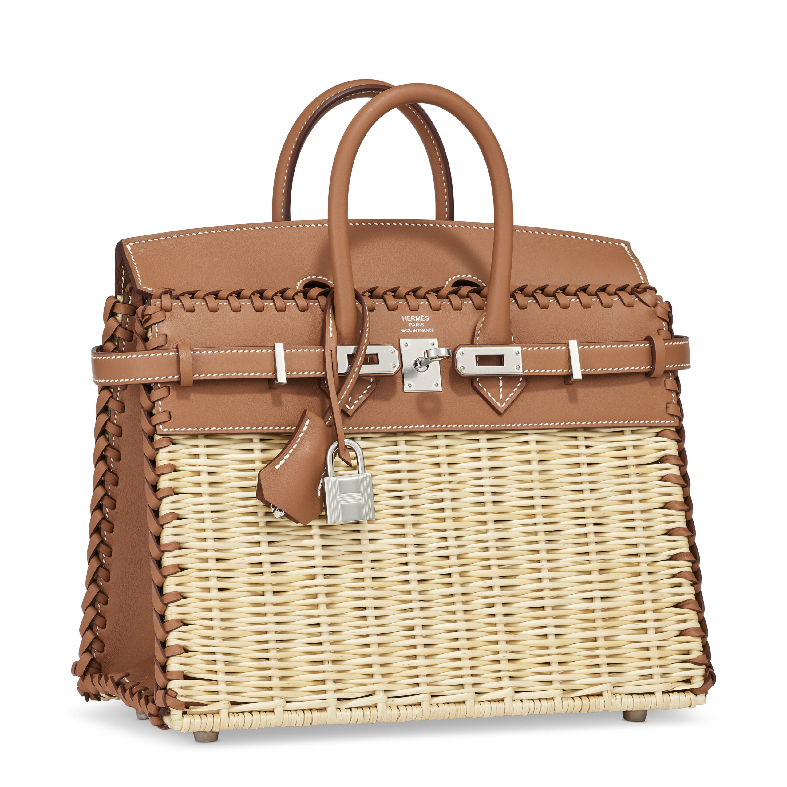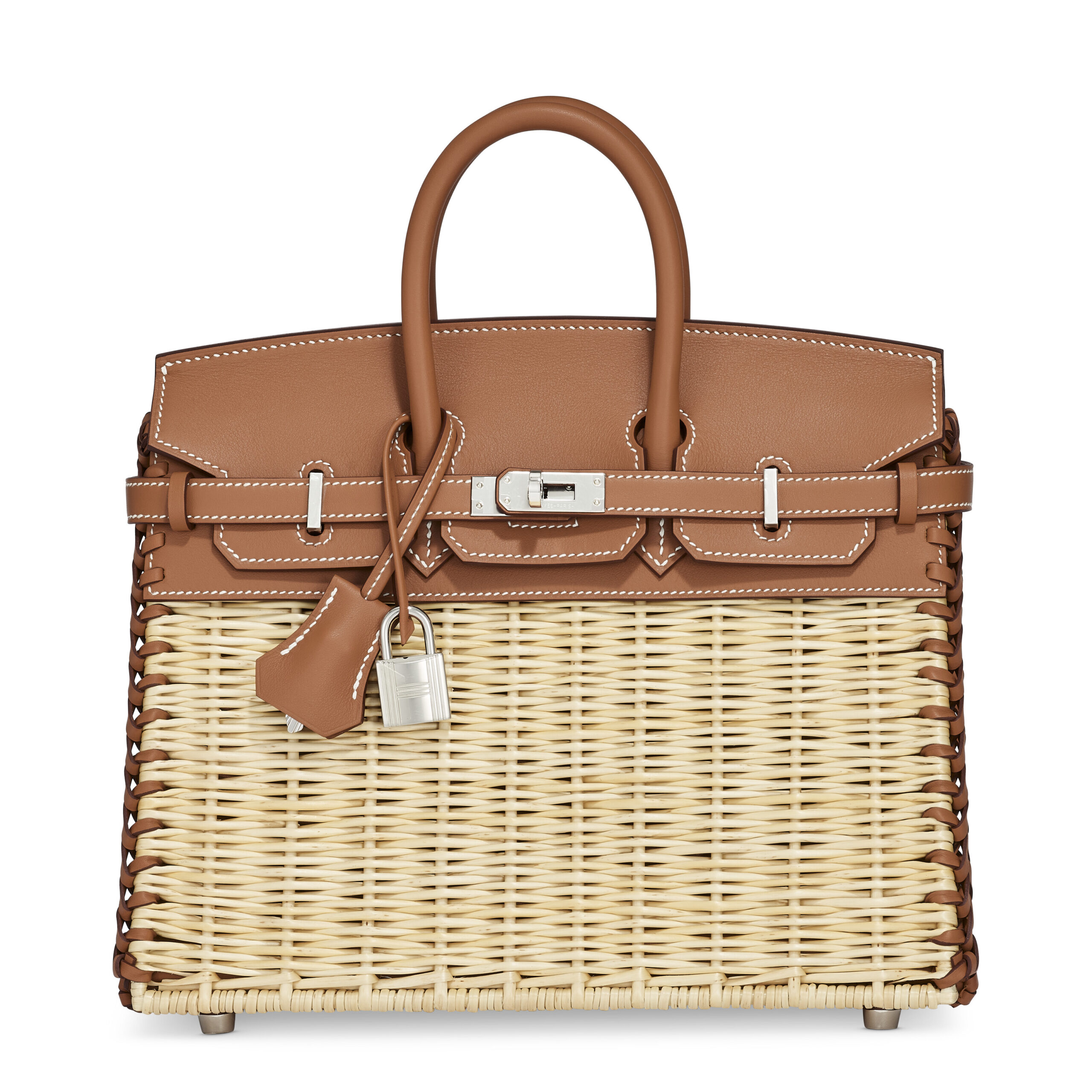 The “Picnic” theme is an ode to leisurely elegance and pastoral beauty. The woven wicker element evokes images of sun-drenched gardens and cherished gatherings, while the structured Birkin silhouette maintains its iconic, powerful presence. This Birkin 25 format offers a delightfully compact and versatile scale, perfect for both daytime refinement and evening sophistication. The design is a conversation between the rustic and the regal, resulting in a bag that is both playful and profoundly luxurious.