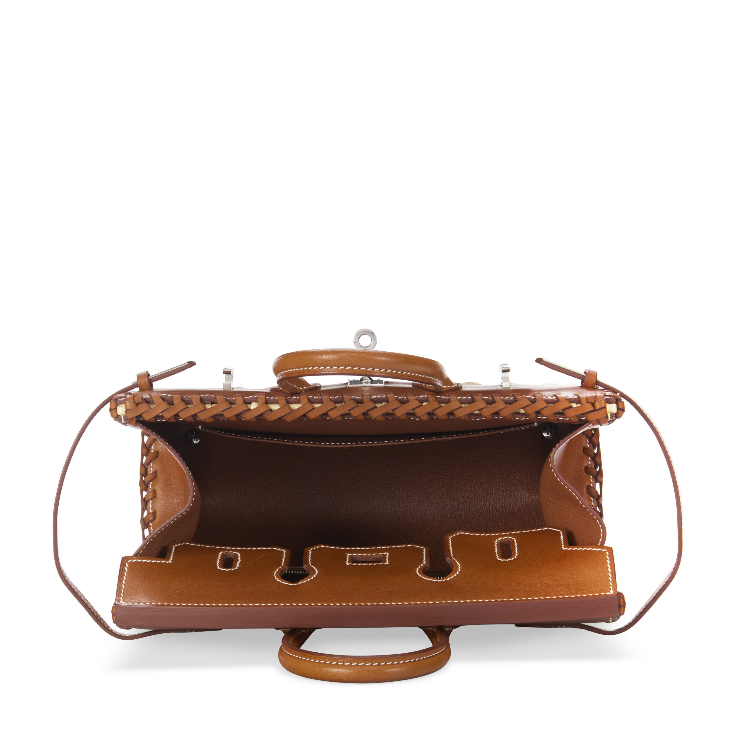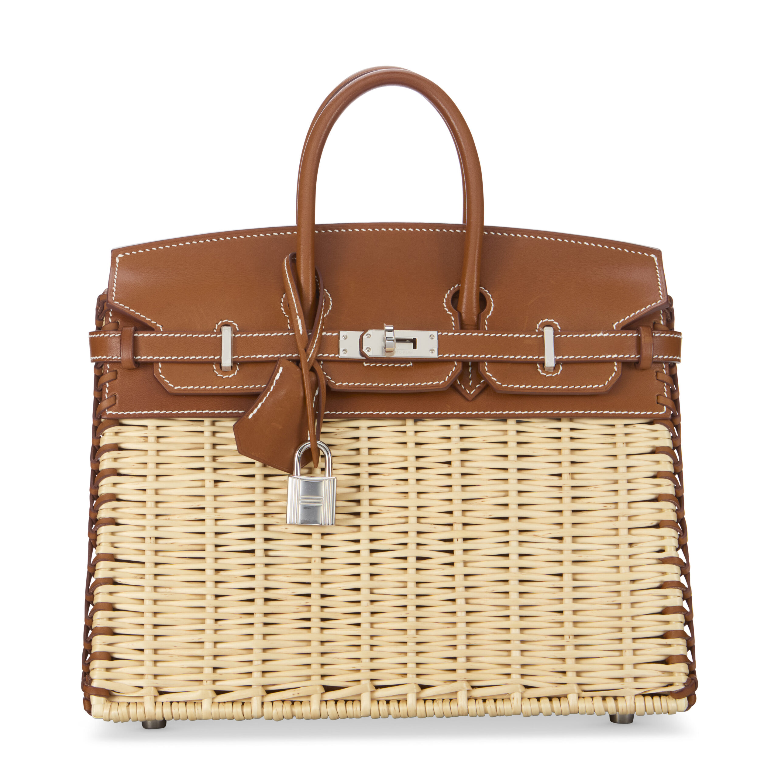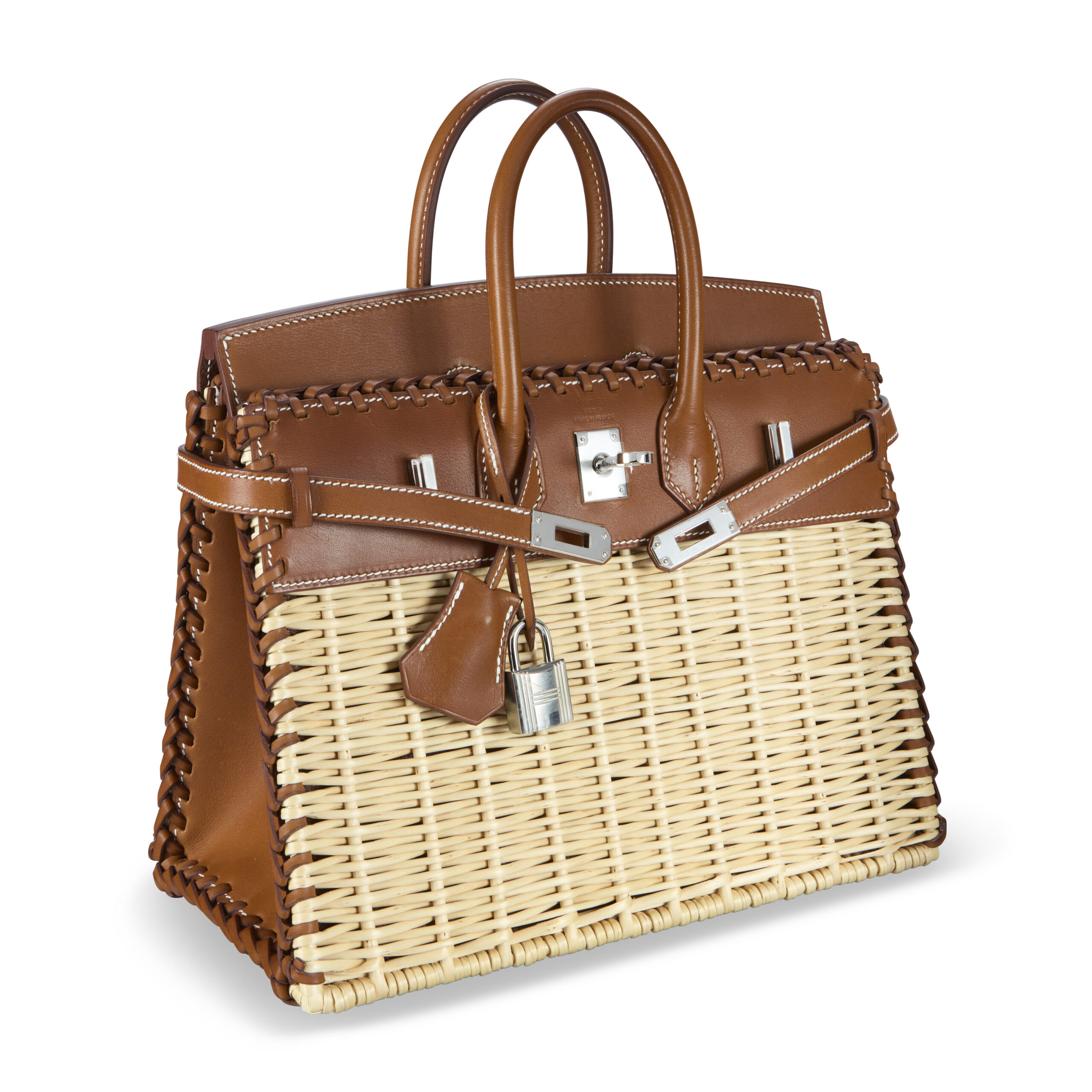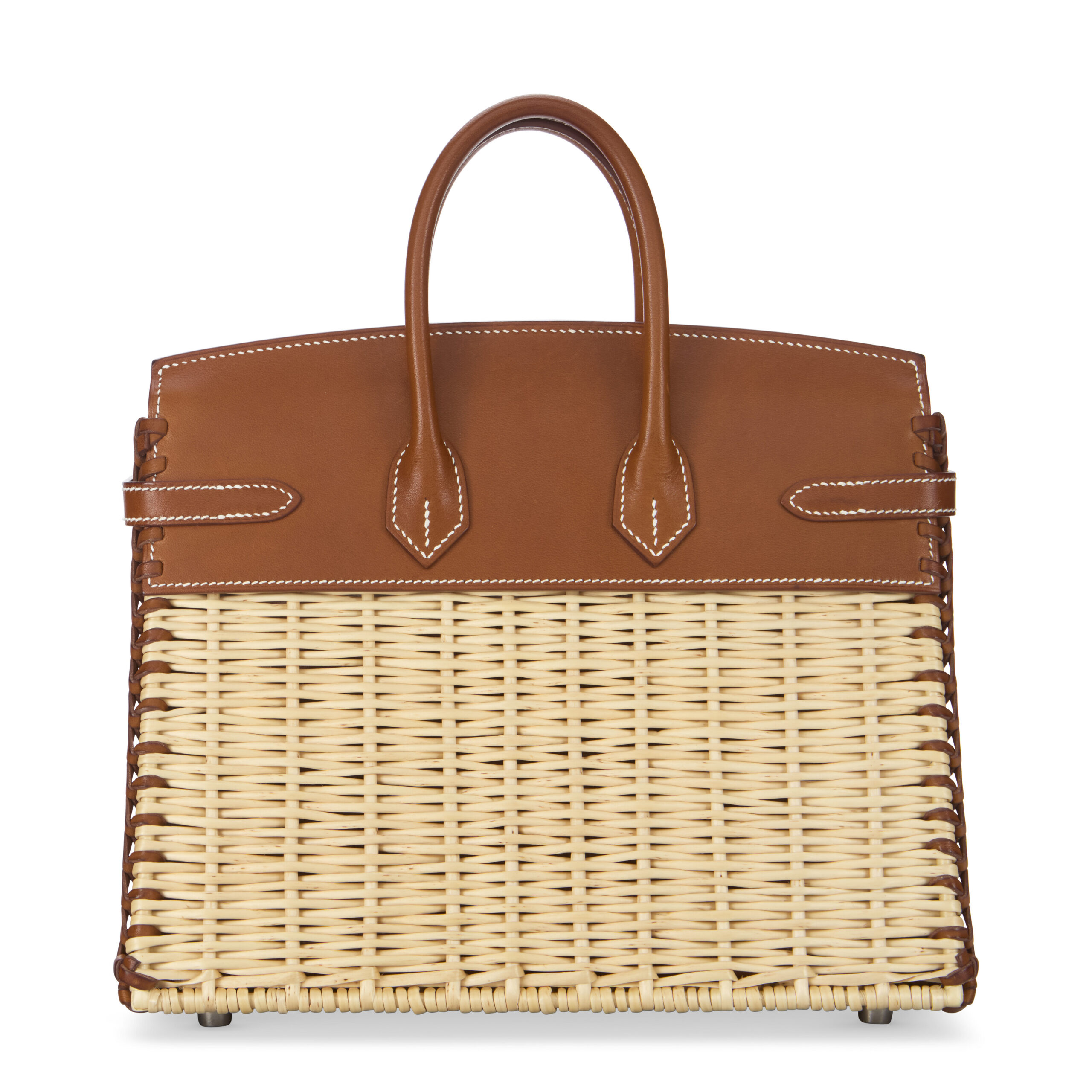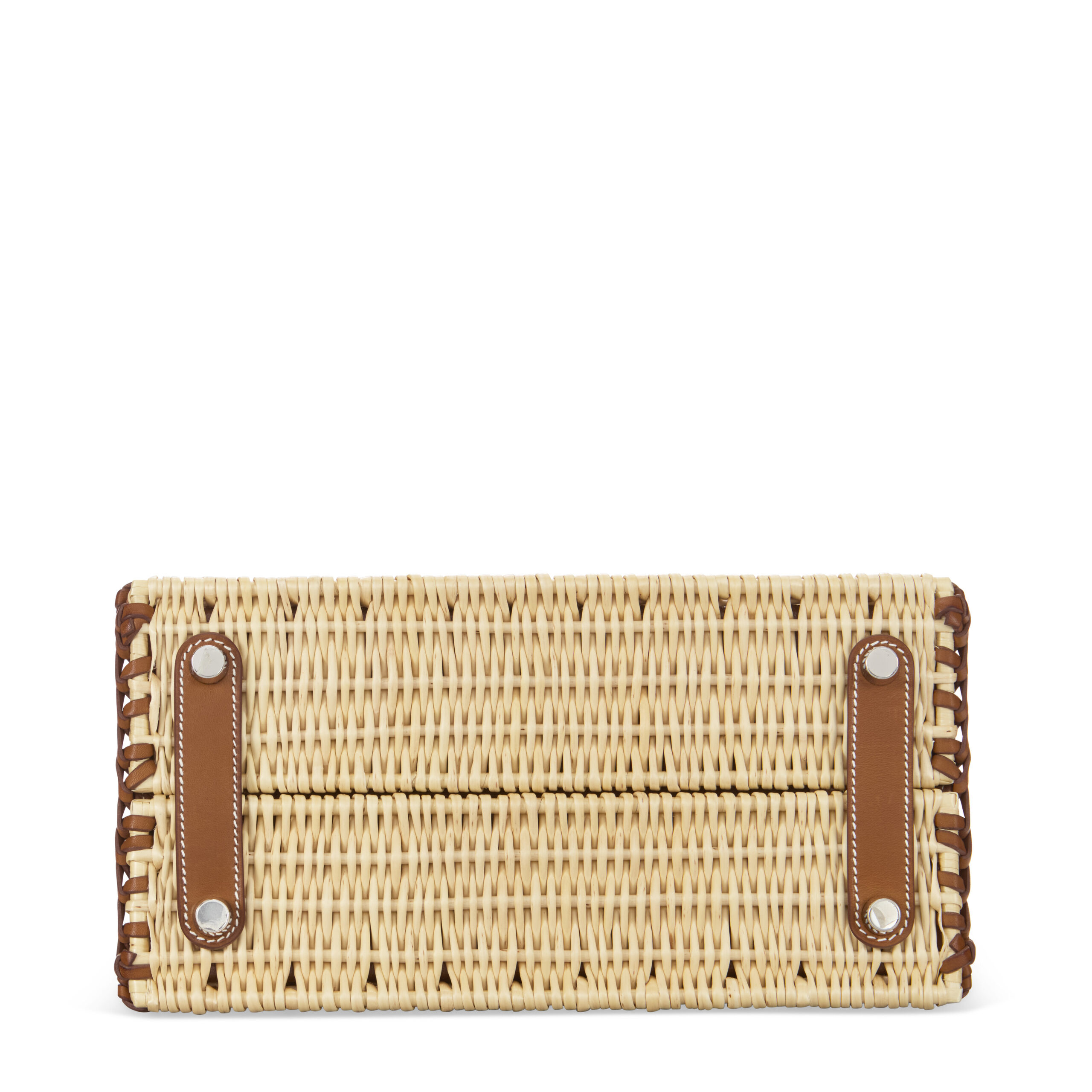 At its heart lies Hermès’ legendary Barénia leather, a full-grain calfskin revered for its dry hand-feel and unique patina. Unlike protected leathers, Barénia is dyed through an aniline process, allowing its natural character to shine through. Over time, it develops a rich, personal sheen, telling the story of its journey. This is lovingly framed by genuine osier wicker, each strand meticulously selected and woven by skilled artisans. The contrast of textured basketweave against the smooth leather creates a tactile and visual poetry that is distinctly Hermès.