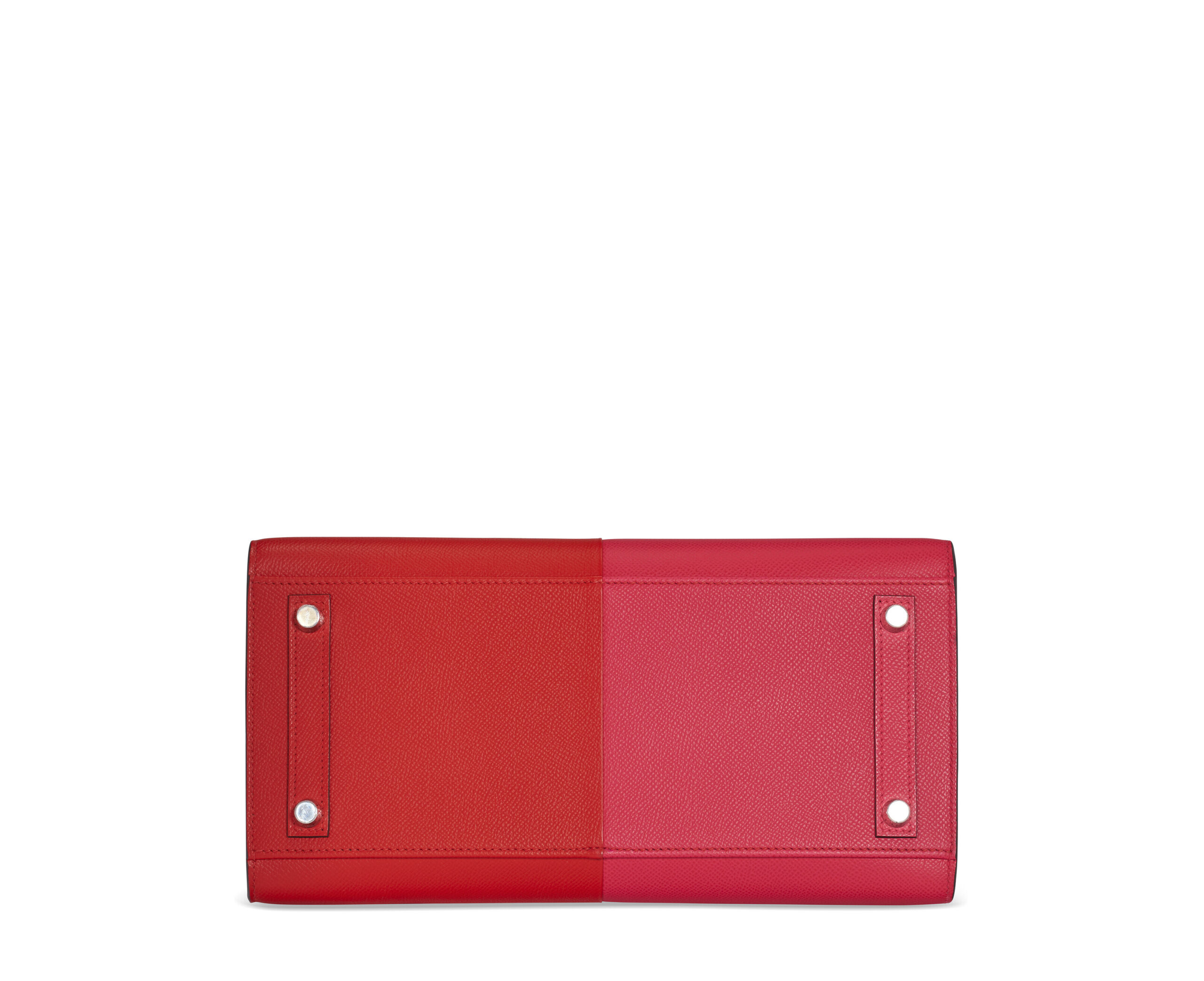The Sellier Casaque construction is the star here, offering razor-sharp, rigid lines and a boxy silhouette that exudes modern polish. The Epsom leather, renowned for its durability, lightweight nature, and fine-grained texture, provides the perfect canvas for this vibrant color story. Each panel—the passionate Rouge de Cœur, the vibrant Rose Extrême, and the deep, oceanic Bleu Zanzibar—is meticulously matched and stitched with precision. This striking visual is impeccably framed by cool, luminous Palladium hardware, from the iconic toggle clasp to the sturdy feet, creating a flawless contemporary finish.