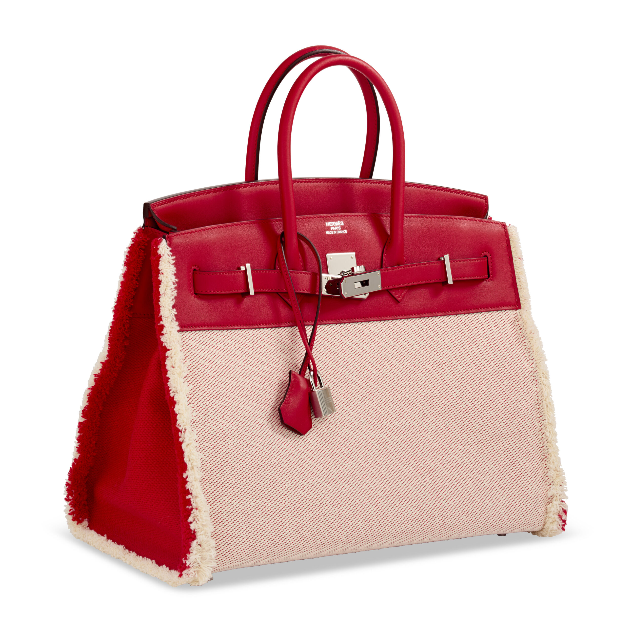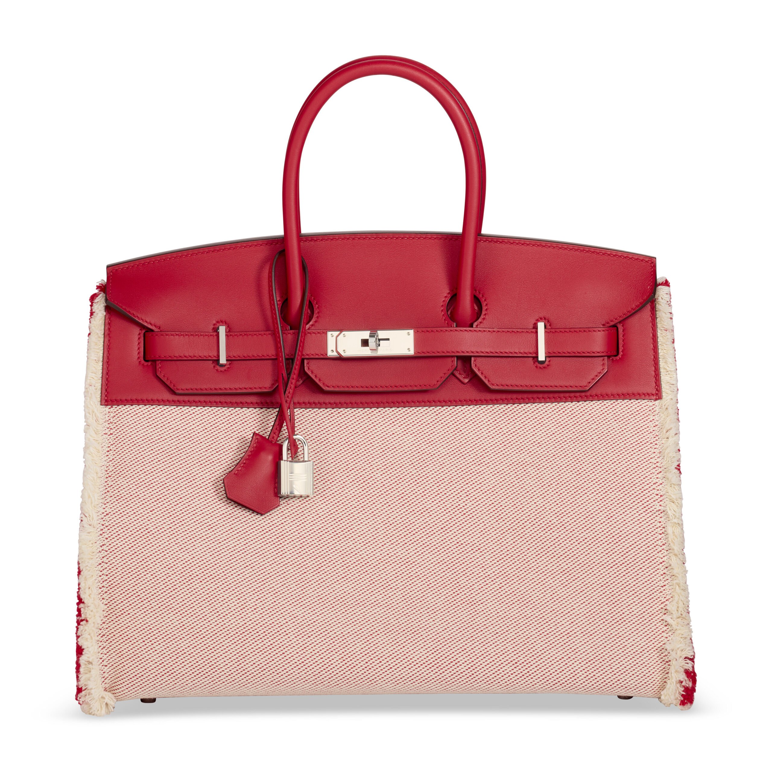 In the exclusive universe of Hermès, few creations generate as palpable a thrill as a bona fide limited edition. This is not merely a handbag; it is a collector’s chapter, a wearable piece of the maison’s illustrious history. Presenting the extraordinary Limited Edition Rouge de Coeur Swift Leather & Twill H Canvas Fray Fray Sellier Birkin 35, a piece where audacious design meets impeccable Hermès craftsmanship. With its striking contrast of textures and unmistakable Palladium hardware, this bag commands attention while exemplifying the pinnacle of luxury handbag artistry.