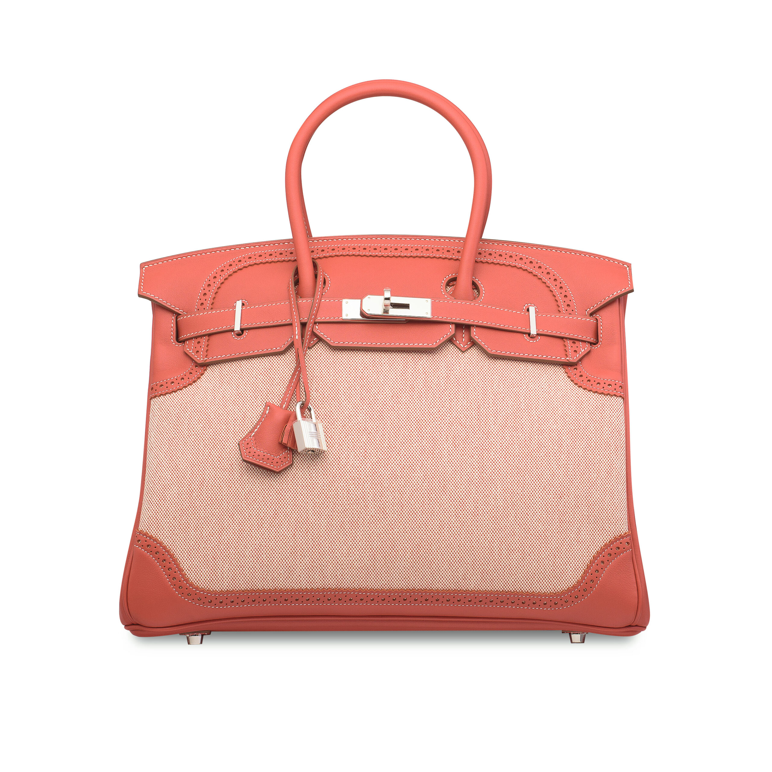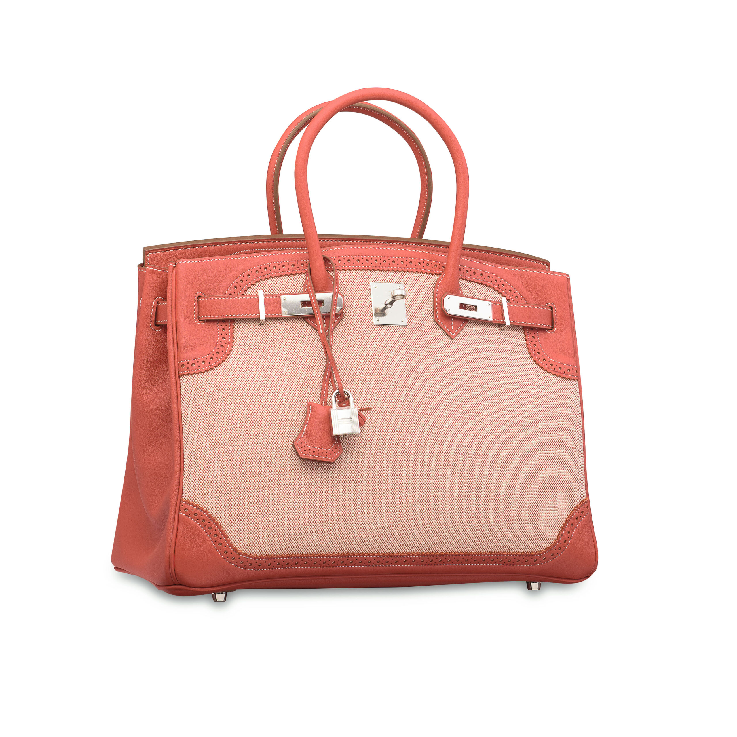 In the rarefied world of Hermès, certain creations transcend accessory status to become wearable art. This Limited Edition Sanguine Swift Leather & Toile Ghillies Birkin 35 is one such masterpiece. A stunning departure from the classic Clemence or Togo, this bag presents a captivating duality of texture and tone, crowned by the exquisite signature of the Ghillies perforated hardware. It is not merely a handbag; it is a definitive statement of connoisseurship.