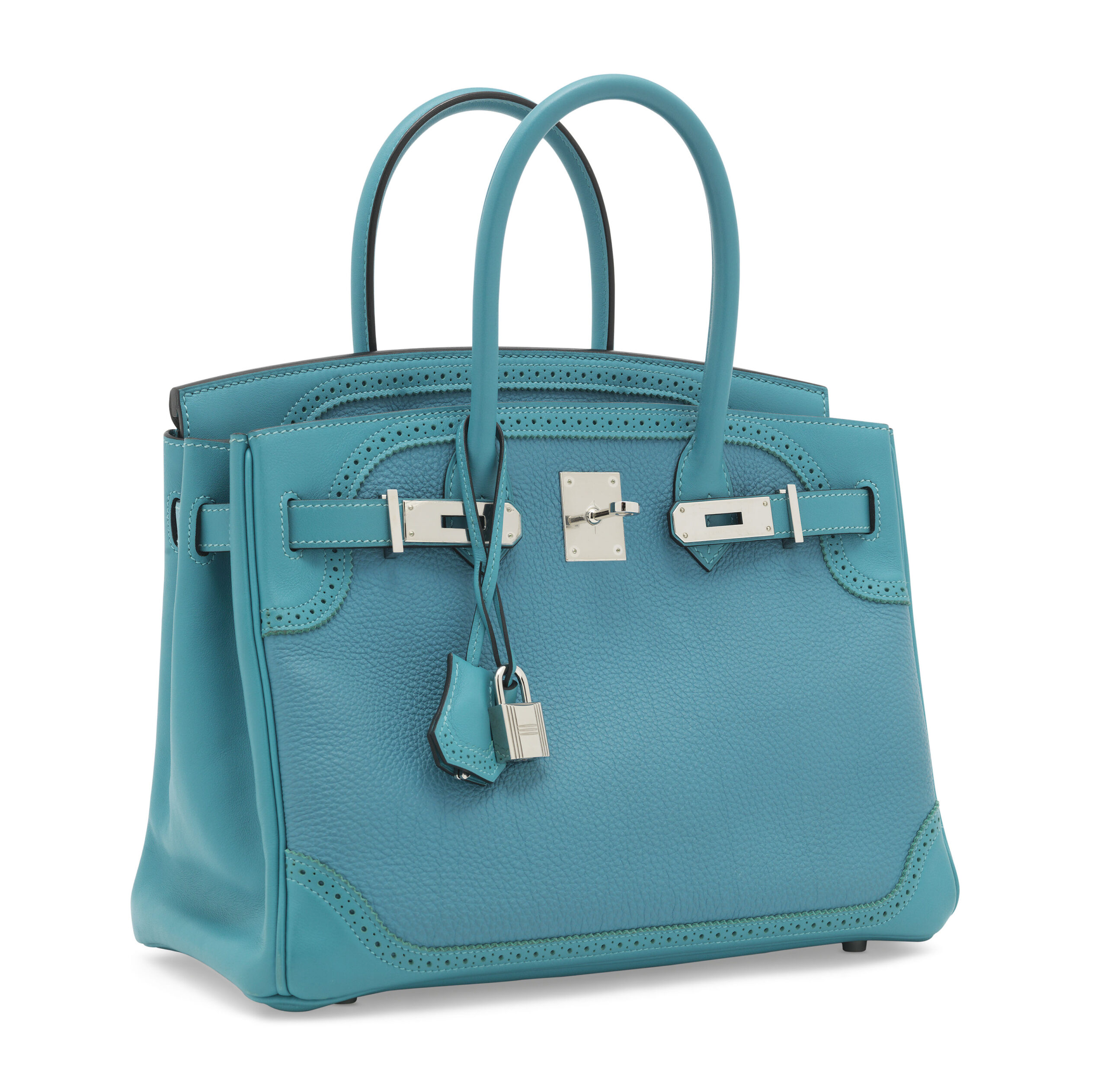 A LIMITED EDITION TURQUOISE TOGO & SWIFT LEATHER GHILLIES BIRKIN 30 WITH PALLADIUM HARDWARE