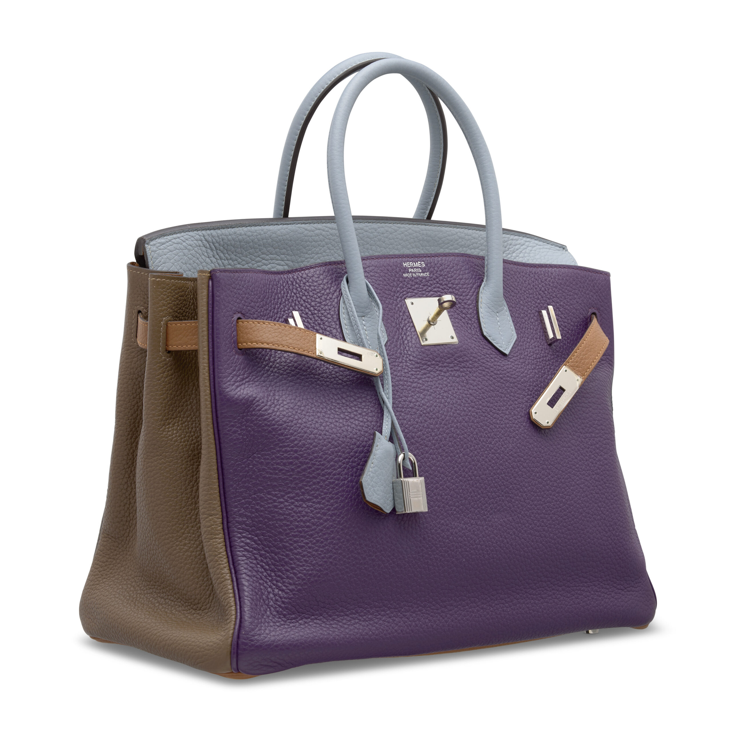 In the exclusive universe of Hermès, few creations generate the fervent desire of the Arlequin Birkin. This is not merely a handbag; it is a moving canvas, a bold declaration of artistry that stands as a testament to the house’s most playful and audacious spirit. Presented here is a breathtaking Birkin 35 from a coveted limited series, where the legendary Clémence leather is transformed into a symphony of six hypnotic hues: Ultraviolet, Bleu Lin, Étain, Bleu Obscur, Étoipe, and Marron d’Indie. Each panel tells a story, harmonized by cool, contemporary Palladium hardware to create a collector’s item of unparalleled distinction.